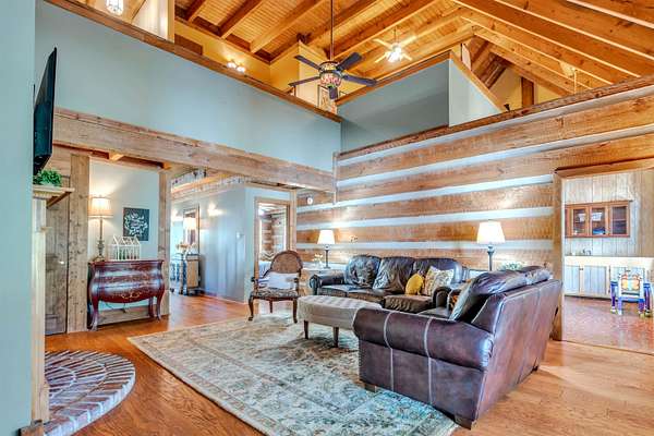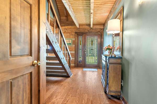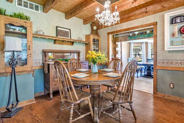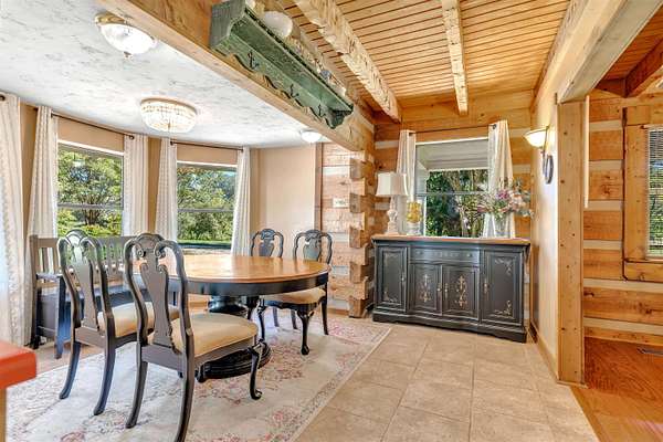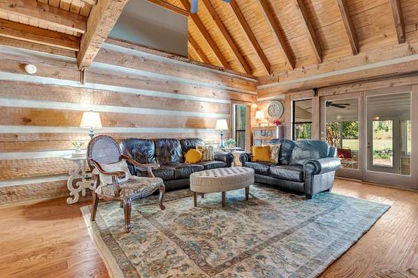 Front porch sittin' on your bucket list? This country retreat delivers! Just 4 miles south of Walmart in Oakland, this unique 3BR/2.5BA home is handcrafted from hand-hewn hemlock beams--known for strength, durability, and resistance to rot and pests. Set on 10 unrestricted acres with a stocked pond, there's room to expand with a barn, guest quarters, or garden. Inside you'll find a spacious great room, dining area, breakfast nook, office (or homeschool room with sink), and sunroom. Soaring ceilings and engineered hardwood floors add warmth and charm. The chef's kitchen boasts high-end Jenn Air appliances, double ovens (one convection), two cooktop options with griddle and built-in downdraft vent. A mudroom, laundry, and half bath are perfectly placed for everyday functionality. Property also includes an attached 2-car garage and a separate workshop--perfect for projects or extra storage. Peaceful country living just minutes from town!