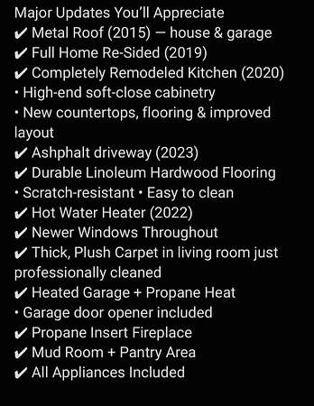 This beautifully updated home offers a warm, inviting feel with thoughtful improvements throughout--including a kitchen update in 2020 w/soft-close cabinetry. A newer asphalt driveway (2023) adds convenience and great curb appeal, while the durable metal roof (2015) provides lasting peace of mind. Upstairs features two flexible bedrooms perfect for guests, a home office, or quiet retreat space. Step outside and experience true country living--apple and cherry trees, grapevines, mature pines for privacy, and open land ready for your vision. Whether you dream of a hobby farm, mini homestead, or simply space to unwind, this property delivers. A barn and additional outbuildings offer endless storage and project possibilities. Enjoy peaceful mornings on the back deck as the sun rises over y our land, all while being just minutes from town and within walking distance to Comins. A rare opportunity to enjoy space, privacy, and a slower pace of life.