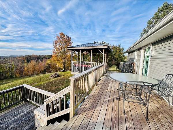 Escape to the country with this beautifully updated ranch-style home set on 10 scenic acres! This 3-bedroom, 2-bath home features a spacious finished basement, a 2-car attached garage, and a covered front porch perfect for relaxing. Step out back to the expansive 36' rear deck and take in breathtaking panoramic views that stretch for miles. Outside, you'll find a 36x44 outbuilding, a 16x100 building, open hay fields, and wooded areas-ideal for hobby farming, outdoor recreation, or simply enjoying the peace and privacy of rural living. Recent updates include new siding, windows, furnace, landscaping, and more, offering a move-in-ready retreat with modern comfort and country charm. Spectrum is available.
