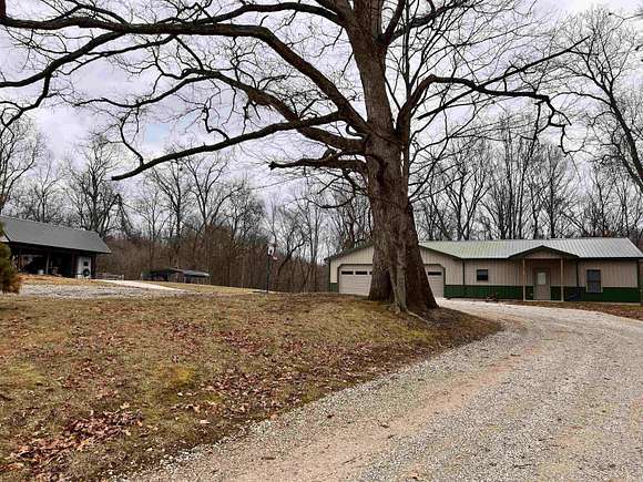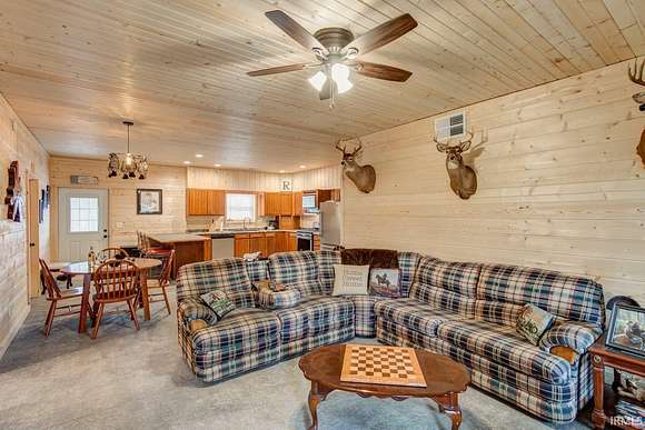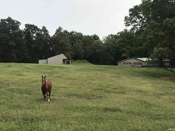 Live and breathe on your own 24 acre ranch with this pole barn home that comes with a 26 x 40 barn and pasture for horses and other animals. You will appreciate this owner's quality workmanship and fine materials throughout: 9' tongue and groove wood ceilings, stamped concrete floors, designer kitchen, tiled shower and knotty pine walls. Everything is like new in this warm and cozy 2 bedroom, open concept living space, extending to a covered back porch to take in the beautiful views! There is plenty of extra space in this two car garage for a work area/man cave w/an attached wood shed to maintain the wood stove. This property has endless possibilities: mini farm, hunting lodge, ATV trails or hiking. Whatever your hobbies might be there is plenty of room to wander...conveniently located close to an airport, French Lick entertainment and recreation at Patoka Lake. You will feel like you are home on the range!