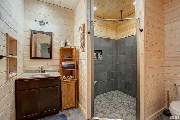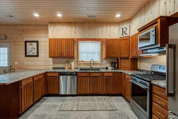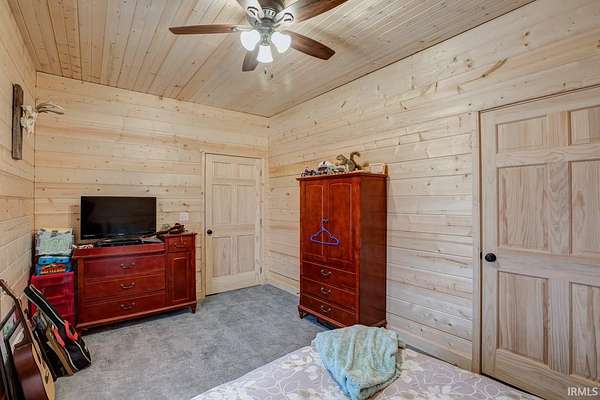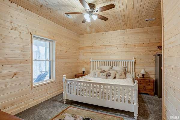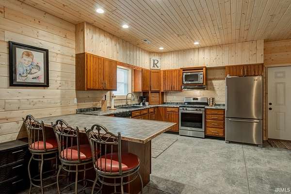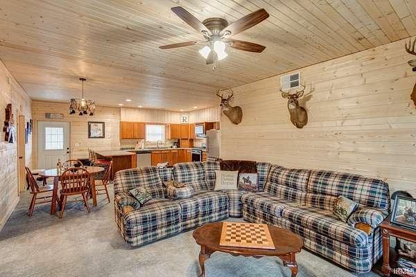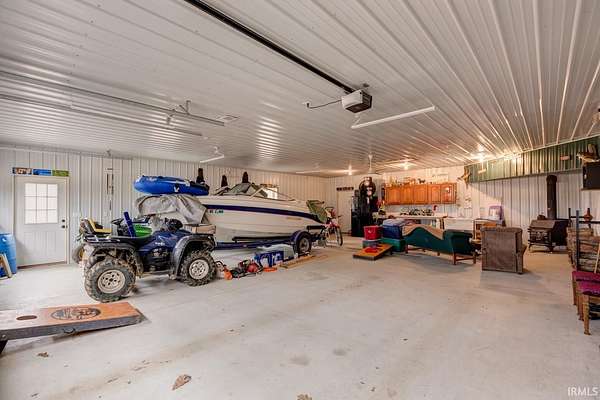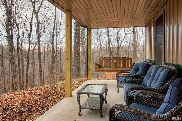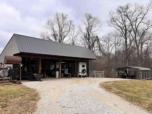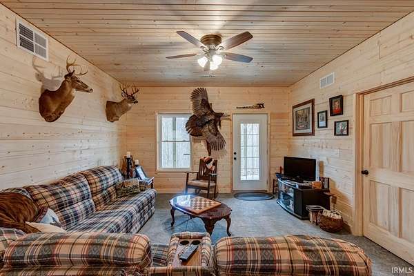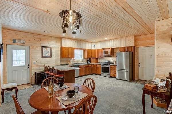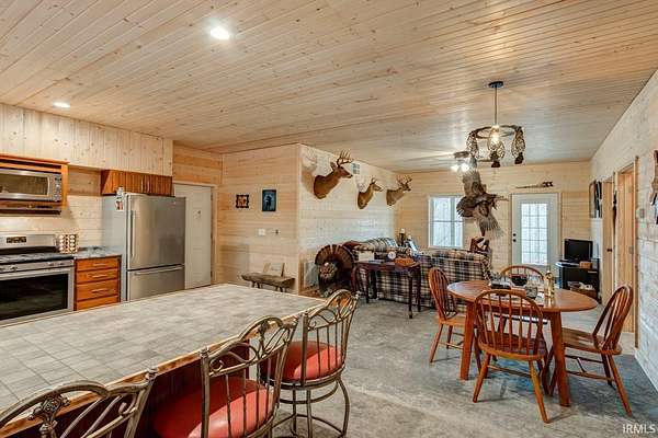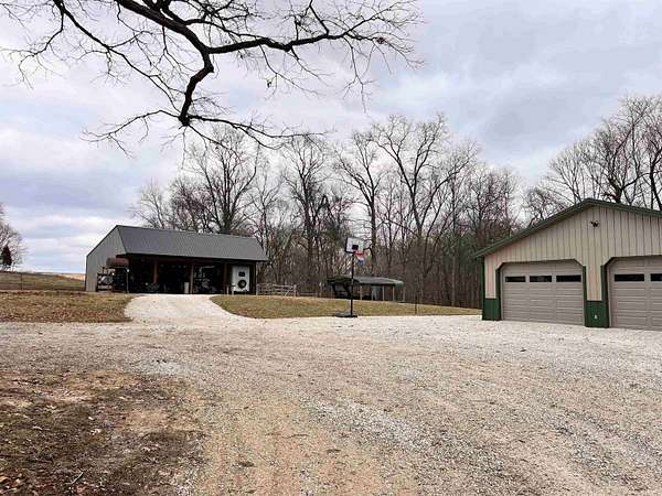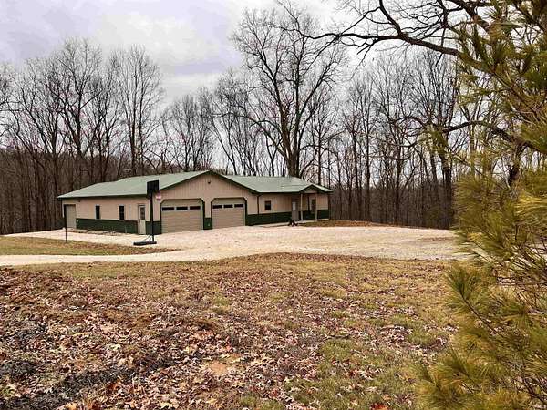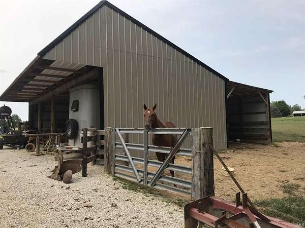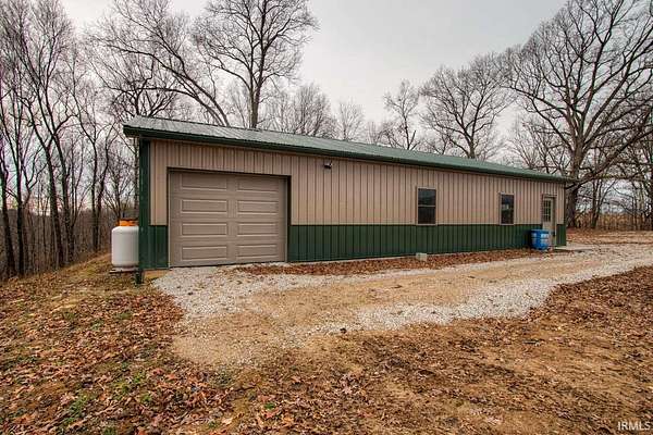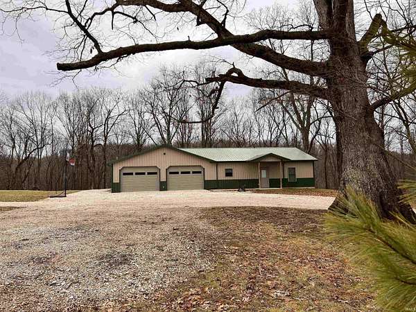 Live and breathe on your own 24 acre ranch with this pole barn home that comes with a 26 x 40 barn and pasture for horses and other animals. You will appreciate this owner's quality workmanship and fine materials throughout: 9' tongue and groove wood ceilings, stamped concrete floors, designer kitchen, tiled shower and knotty pine walls. Everything is like new in this warm and cozy 2 bedroom, open concept living space, extending to a covered back porch to take in the beautiful views! There is plenty of extra space in this two car garage for a work area/man cave w/an attached wood shed to maintain the wood stove. This property has endless possibilities: mini farm, hunting lodge, ATV trails or hiking. Whatever your hobbies might be there is plenty of room to wander...conveniently located close to an airport, French Lick entertainment and recreation at Patoka Lake. You will feel like you are home on the range!