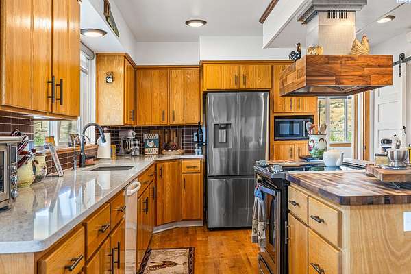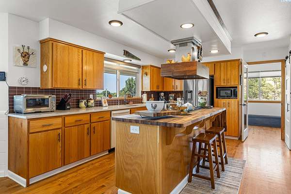 MLS# 285837 Wouldn't it be nice to know you're going to be ok no matter what happens? Cherryview Farm is a self sufficient little piece of heaven on earth nestled right between Terra Blanca Winery and Tucannon Cellars. 10.21 total acres to create the life you've been dreaming of, growing some of the best Rainier cherries in the world from roughly 6 acres of the income producing cherry orchard. You'll have senior water rights to the Yakima river with 2 irrigation pumps, a chicken coop, garden beds, Black walnut trees, English walnut trees, mulberry bushes, quince bushes, grapevines, and multiple fruit trees including plum, peach, apricot, red pear, nectarine, and Fuji apple. All this and pasture grass for any animals you'd like to raise, a wood shed, chemical shed, and 48x36 shop. Wondering where you'll rest after all that farm work? The 3000sf modern farmhouse was built in 1996. Updates began in 2018 and have continued to date. Drop your boots and hang your hat in the entryway then choose the stairs down to the family room, bedroom, full bath, extra storage, laundry room and garage OR take a right to the custom kitchen with butcher block island, hand-milled hardwood oak floors, built-in window bar and pantry. The main floor also includes an office with built-in Murphy bed and full bathroom, dining room, and a living room with the coziest wood burning fireplace. The wrap-around deck and hot tub are perfect for unwinding and enjoying the fruits of your labor. Upstairs is a true sanctuary with your primary bedroom and oversized closet featuring 2 smart mirrors and an extraordinary window view. The large vaulted ceiling living space, full bathroom and 2nd bedroom make it feel even more luxurious and the deck with expansive views of the Yakima river will truly take your breath away. There's so much that makes this home and property it's hard to put into words. You should see it for yourself. Schedule the appointment today.