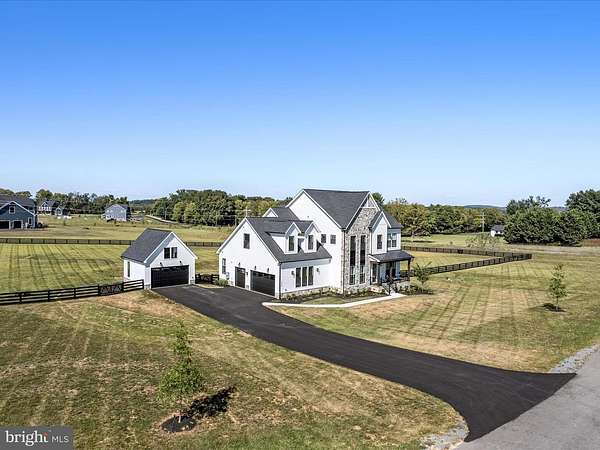 Better than brand new! Upgrades galore! Newly built in 2024. Welcome to 38906 Rumely Way, a stunning Van Metre Timberneck III model situated on 3.35 picturesque acres in the highly desirable community of Waterford, VA. This beautifully crafted estate offers over 6,500 square feet of luxurious living space, featuring 6 bedrooms, 5.5 bathrooms, and an impressive 5-car garage with 3 attached and 2 detached spaces. Designed for both elegance and functionality, this home showcases high-end finishes, smart home features, and thoughtful improvements throughout. At the heart of the home is a large upgraded gourmet kitchen, complete with quartz countertops, double islands, Cafe appliances, a butler's pantry/mudroom with additional counter space and storage, and a large walk-in pantry. The perfect kitchen for entertaining and everyday living. The open-concept floor plan flows seamlessly into expansive living and dining areas adorned with luxury vinyl plank flooring, designer light fixtures, plantation shutters, and detailed custom trim work. Upstairs, you'll find five spacious bedrooms and 4 full bathrooms, including a luxurious primary suite with marble tile in the bathroom, upgraded shower features, and a fully customized walk-in closet with designer paint and trim. A convenient and spacious laundry room completes the upper level. The finished basement offers a sixth bedroom, a full bath, and extensive custom trim work, making it ideal for a guest suite, home theater, gym, or additional living space. Walk-up access leads to a fully fenced backyard, enhanced by a four-board fence and a professionally installed French drain system. A spacious deck offers the perfect place to relax or entertain, with ample room remaining for a future patio or pool. Additional upgrades include built-in speakers, smart home technology, a security system with cameras, custom barn doors on the third floor, and enhanced trim work in the stairwell, hallways, and primary suite. Designer lighting in the kitchen, foyer, and primary bathroom further elevates the home's sophisticated style. This exceptional property is truly move-in ready and offers the perfect blend of luxury and modern convenience in one of western Loudoun County's most beautiful areas!