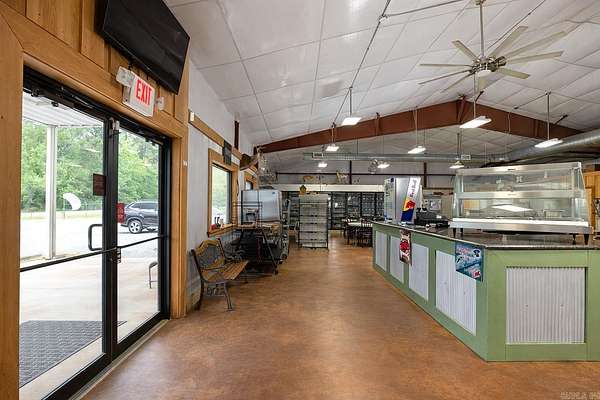 Turn-key, fully equipped commercial property offering over 5,000 square feet of versatile space. Previously operated as a catfish restaurant, this property is already well-suited for food service but offers flexibility for many types of businesses. The setup includes a dedicated crawfish cook shack featuring a 90-quart cooker, along with a bait shop—ideal for attracting both dining and local outdoor enthusiasts. The facility is outfitted with a spacious 19-foot walk-in cooler, fountain drink machines, and most equipment will convey with the sale, making this a ready-to-operate business from day one. The sale also includes tables, chairs, dishes, and a full range of commercial kitchen equipment. Additional features include four TVs, a security camera system, and a robust HVAC setup with three 5-ton units and one 2.5-ton unit to ensure comfort throughout the building. A separate dining area provides flexibility for private events, parties, or expanded seating options, adding another potential revenue stream. This property offers incredible flexibility and could be adapted for a wide range of business ventures with the right vision. The possibilities are endless!
