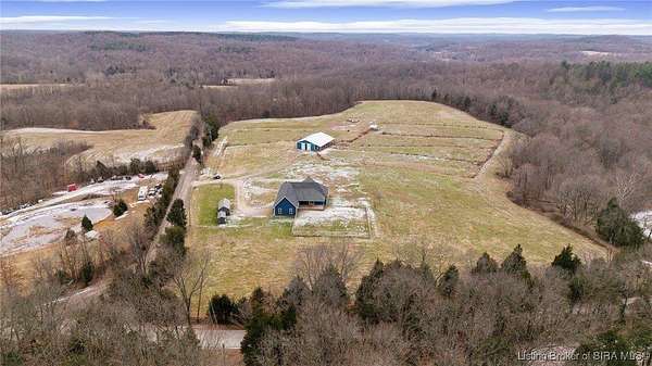 Welcome to your private retreat in the heart of Crawford County, Indiana, where modern comfort meets peaceful country living. This beautifully maintained 3-bedroom, 2-bath home sits on an impressive 19.46 acres, offering space, privacy, and endless outdoor possibilities--just minutes from Hoosier National Forest and Patoka Lake. Inside, you'll find a thoughtfully designed open-concept floor plan filled with natural light. The spacious living area flows seamlessly into the kitchen and dining spaces, making it ideal for everyday living and entertaining. The home features a dedicated laundry room with built-in cabinetry, sink, and countertop for added convenience. The primary suite is a true retreat, complete with a jetted tub, tiled shower, dual vanities, and a huge walk-in closet with custom built-ins. Outside, the property is equally impressive with a fenced-in backyard, horse stable, utility shed, and plenty of room to roam, garden, or enjoy recreational activities. Whether you're seeking a peaceful homestead, hobby farm potential, or a nature lover's escape near hiking, boating, and fishing, this property delivers the perfect blend of tranquility and functionality. A rare opportunity to own acreage with modern amenities in a prime Southern Indiana location. Sq. ft. & room sizes approximate. Buyer to verify if critical.