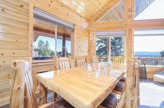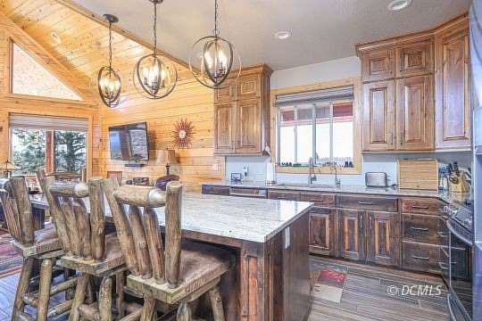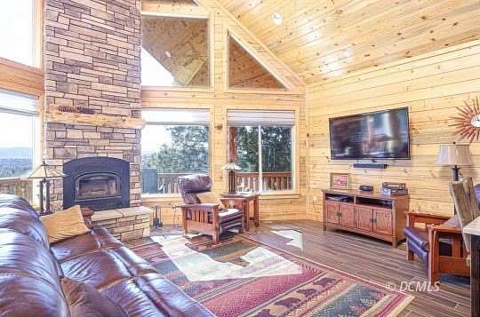 Set on 6.27 acres, this stunning 3-level mountain retreat offers 4 bedrooms and 3 bathrooms with exceptional attention to detail throughout. Finest materials and superb craftsmanship are showcased throughout every space, highlighted by a dramatic floor-to-ceiling rock fireplace that anchors the main living area. Granite countertops and beautifully crafted cabinetry elevate the kitchen, while quality tile and carpet provide both durability and comfort. A spacious loft hosts the primary bedroom and bath, creating a peaceful, elevated escape. Warm wood finishes flow throughout the home, adding timeless character and a true cabin feel. Expansive windows frame incredible views in every direction, with abundant wildlife frequently passing through the property. A massive 1,460 sq ft detached garage offers the perfect setup for mountain living, with ample space to store ATVs, snowmobiles, trailers, and all essential outdoor gear. Designed with functionality in mind, the layout provides room for equipment, tools, and workspace, making it an ideal hub for year-round adventure and storage. Privacy, scenery, and high-end finishes come together to create a rare and inviting mountain getaway.