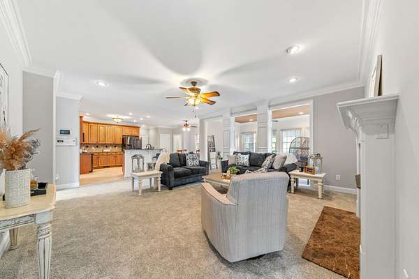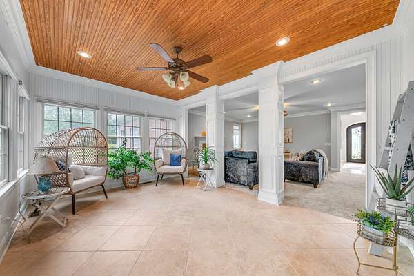 A MUST SEE!! From the moment you pass through the gated entrance, this property feels special! The 22+ acres are flat, beautifully maintained, & completely usable, whether you're after peaceful country living, space for animals, or a world-class setup for your car collection. The home itself offers over 3,800 sq. ft. of thoughtful living space. A dramatic two-story foyer greets you, with a grand staircase & walls of windows that flood the home with light. The kitchen is spacious & inviting with a pantry, breakfast area, and easy flow into the formal dining room & family room. The main-level primary suite is a true retreat, complete with a double vanity, oversized tile walk-in shower & soaking tub. Upstairs, you'll find four more bedrooms & a huge bonus room that's ready for game nights, movie marathons, or anything your family dreams up. Step outside & you'll instantly picture your next gathering around the custom outdoor kitchen, complete with stainless appliances & a double-sided fireplace. The views here are wide-open & peaceful, the kind of place where sunsets never get old. And then... the shops. If you're a car enthusiast, hobbyist, or collector, this is your playground. The main shop is 40x120, fully heated & cooled, with 5 custom insulated 14' garage doors, a Wildfire lift system, full lighting, cabinetry, shelving, restroom, Swisher storm shelter, an indoor/outdoor Bluetooth stereo + PA system, & a massive concrete pad for additional parking. The security system with cameras is already in place. The secondary barn is 48x84 with a 24' center bay, dual 12' side sheds, ThermaGuard insulation, rock wainscot, plenty of windows, multiple garage doors, walk-through entries, an open lean-to with painted concrete floors, overhead lighting with water roughed in. This property is one of those rare finds that blends high-end living with professional-grade workshop capacity & all the privacy you could ask for. Call today for a private showing!