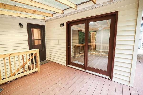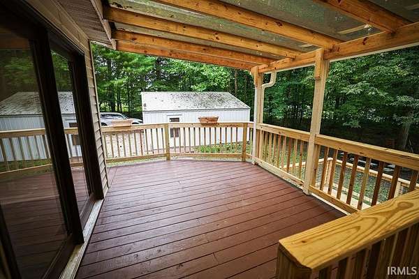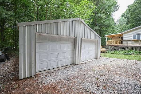 Welcome to your very own retreat! This beautiful three-bedroom, two-bath ranch home combines modern comfort with rustic charm, nestles on nearly 4 acres adorned with mature trees and abundant with wildlife. Step inside to discover a cozy living space featuring a vaulted ceiling which opens to a kitchen area with brand new cabinets, granite countertops, and appliances. A dining area is off of the kitchen with an island area available for eating. Enjoy the fresh air and beautiful views from the large front porch, or the expansive back- lower-level deck, all perfect spots for morning coffee or evening relaxation. With ample room to roam, hike, or engage in outdoor sports. You'll appreciate the privacy and tranquility this property offers as it backs up to Bean Blossom Creek. Explore the backyard, where you'll find a delightful stone picnic table and a fire pit area. Other features include a detached two-car garage with a side gravel area for parking a boat or trailer. New roof in 2022, new gutters in 2025, Landscaping allowance and an industrial dehumidifier and liner in the crawl space. Other recent upgrades include: newly remodeled bathrooms, new floors throughout, new windows, fresh paint, and a new skylight porch. New Hvac system in 2024, new washer and dryer, upgraded plumbing and electrical systems. Don't miss your opportunity to own your little piece of paradise.