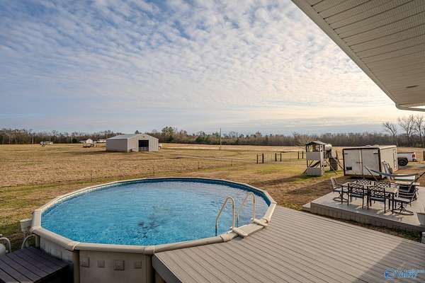 Beautiful 3 bed, 2 bath home on 13 +/- acres! The property features open pasture with cross fencing, ideal for livestock or horses, and two stocked ponds filled with bass. A 40x70 barn with 14-foot clearance includes power & water, three horse stalls, & a shop area at the front, plus an additional metal barn with gravel floors. The home offers a welcoming foyer, living room, dining room, & breakfast room. The kitchen includes granite countertops, eat-at island, pantry, & appliances. The primary suite features a walk-in closet & full bath. Additional highlights include a 2-car attached garage with large storm shelter, unfinished bonus room above, above-ground pool, deck, covered back porch.