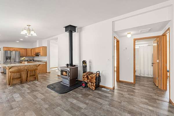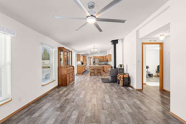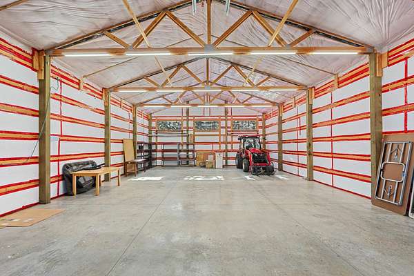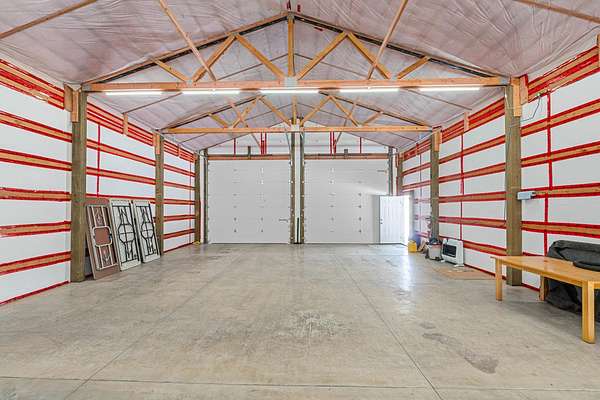 Skip the wait of building and move right into this pristine 2023 built home that perfectly balances modern comfort with massive utility. Situated on a flat, partially treed 9.45 acre lot, this property offers the privacy of the woods with the functionality of a completely usable homestead. With 1809 square feet of thoughtfully designed space, this home is built for today's lifestyle offering 3 spacious bedrooms and 2 modern bathrooms. A dedicated office space ensures you have a quiet, professional area to stay productive. The wood stove provides that perfect secondary heat source and a warm ambiance during the winter months. Out buildings include a massive 60 x 40 insulated pole barn complete with a propane heater and sealed concrete floor, a temperature controlled shed plus the original garage provides dry, clean parking and even more storage space. Whether you are looking for a turnkey modern home, a large workspace, or quiet acreage to call your own, this property delivers on every
