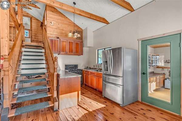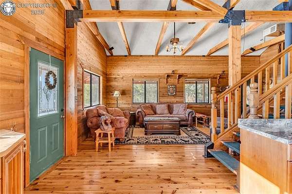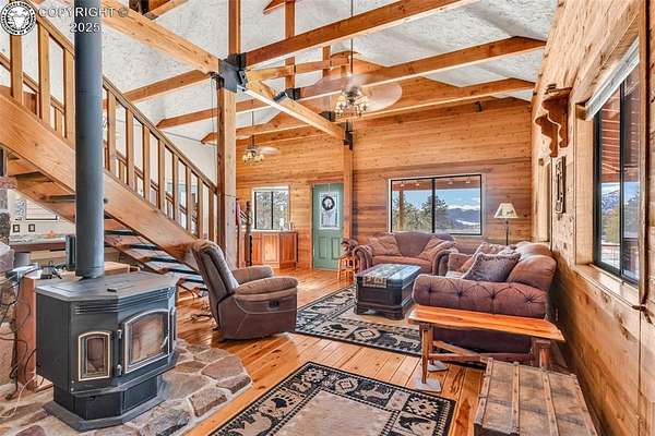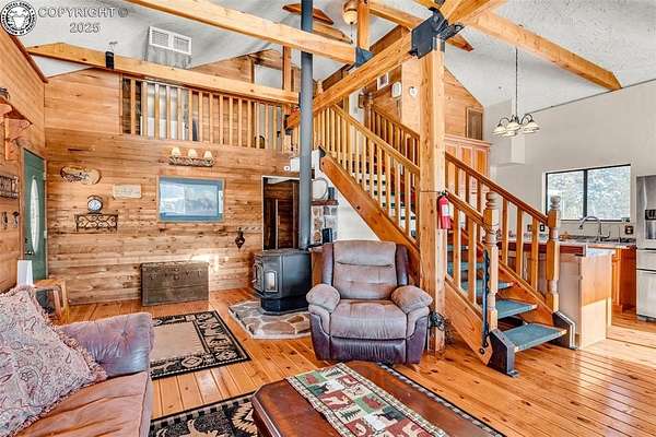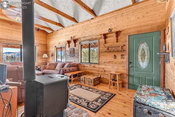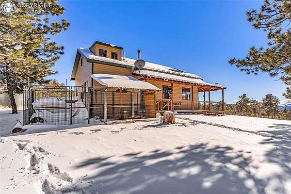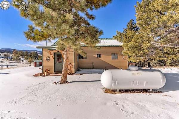 This charming mountain cabin offers 3 bedrooms 2 bathrooms and 1252 square feet of comfortable living space on 1.5 private acres. Imagine spending Christmas 2025 here with the snow gently falling outside as you gather around the newer pellet stove and soak in the magic of your own mountain retreat.. Step inside this beautifully updated mountain home in Canon City Colorado and feel the warmth and charm from the moment you walk in. Fresh interior paint and stunning refinished wood floors set the tone for cozy mountain living. The kitchen is the heart of the home with newer cabinets, updated counters and newer appliances that make cooking and entertaining effortless. The spacious mudroom with laundry is a dream featuring a convenient folding table, tons of storage and an included washer and dryer. Outside the excitement continues with a huge 30x40 detached metal garage that provides incredible space for vehicles tools and all your toys. Additional storage includes a log sided shed and two metal sheds one with a carport style overhang. Step onto the recently restained deck and breathe in the crisp Colorado mountain air. A 500 gallon propane tank and pellet stove keep the home warm and inviting all winter. Starlink internet and a cell phone booster ensure you stay connected even in this private mountain setting. A Generac generator automatically powers the home & garage during outages giving you comfort and confidence year round. The well is not currently in use but the property offers 4000 gallons of water holding capacity for delivery. If you prefer to restore the well the last estimate to get it operational again was 5000 dollars. Make this cabin your exciting mountain dream getaway where relaxation adventure and unforgettable holidays await. Even the furniture can stay.
