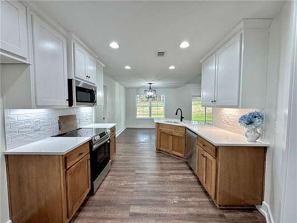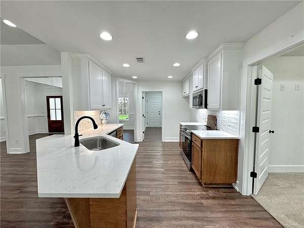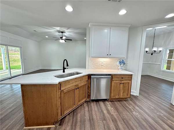 Space, privacy, and NEW construction! This 4-bedroom, 2-bath home sits on 1.61 acres and features a well-designed split floor plan, modern finishes, and a 2-car garage. The home includes a formal dining room along with a second dining area just off the kitchen that's perfect for casual meals. The kitchen connects to a spacious laundry and mudroom. The primary suite is privately located with views of the backyard and features a soaking tub, separate shower, and a large walk-in closet. Three additional bedrooms and a full bath are located on the opposite side of the home. Step outside to the covered back patio with a wood-burning fireplace, perfect for relaxing or entertaining. With LVP flooring in the main living areas, carpet in the bedrooms, and 1.61 acres to enjoy, this property offers the perfect balance of comfort, space, and privacy. Listing agent is related to Seller. Schedule your showing today!