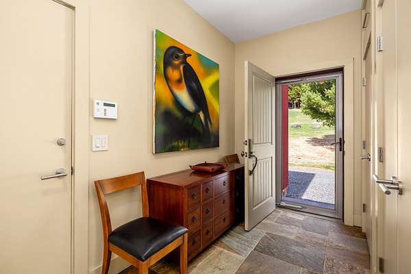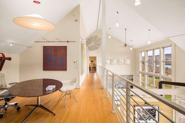 Embrace the best of Maine - hike, ski, fish, and unwind in this serene waterview escape. Nestled above Rangeley Lake's eastern shore, this custom Bank Barn-style home blends rustic charm with modern design. Set on nearly two acres, with additional land potentially available for purchase, this property offers lake access, sweeping mountain and lake views, and a serene connection to nature. Designed with purpose in collaboration with Paul Drago of NK Architects - and featured in Maine Home + Design - this home draws inspiration from classic barn architecture, maintaining a cohesive bank-barn style with a layout that flows naturally from room to room and out into the landscape. The main level includes an open and airy primary suite with his-and-hers baths, a bright kitchen with adjacent butler's pantry and first-floor laundry, a double-sided gas fireplace, a four-season sunroom, and a stone patio with a retractable awning. Soaring 27' ceilings and custom wood, tile, and stonework highlight the quality and craftsmanship throughout. Comfort is elevated year-round with central air conditioning and radiant heat. Additional features include an open-air office, private library, beadboard sleeping loft overlooking the four-season sunroom, billiard room, gardens, and a large studio space above the heated two-bay garage - with opportunity to finish off a full bath, kitchenette, and living area. The walk-out lower level offers two bedrooms, a family room, and a third heated garage bay for outdoor essentials. A rare opportunity to own a captivating home designed for beauty, comfort, and year-round adventure in the Western Mountains of Maine.