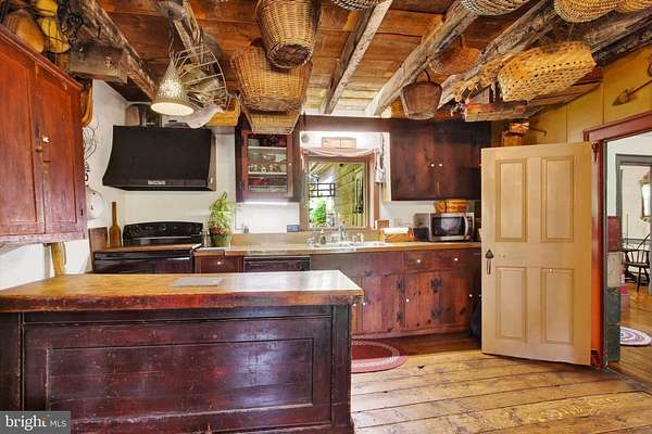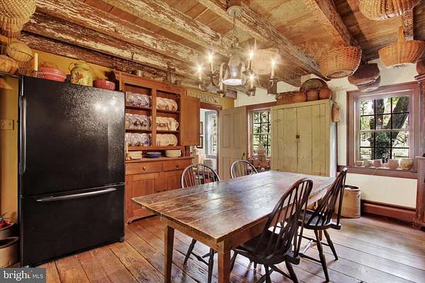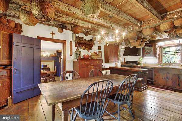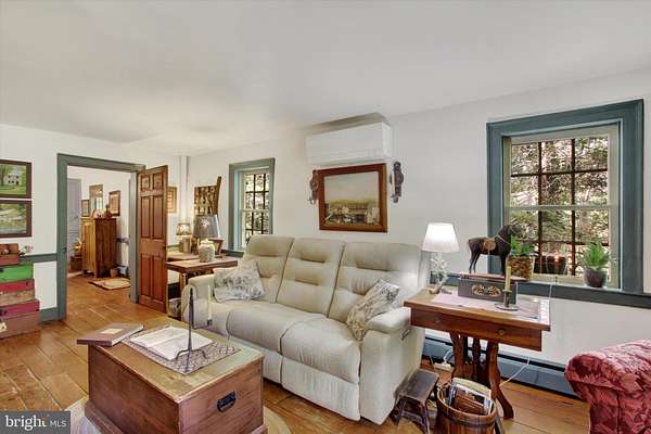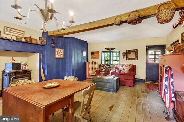 Historic Rare Pre-Revolutionary Home in Adams County, Pennsylvania! Step back in time without giving up modern comfort. Dating back to 1745, this is a true piece of American history situated on nearly 12 level acres, just minutes from Gettysburg, Hanover, York, Route 15, and Harrisburg, PA. This distinctive property has been featured on the cover of two widely distributed magazines, Early American Life and Country Living, for its rare and picturesque charm. Recognized by Historic Gettysburg-Adams County as "The Historic Spangler Farm." The current owners have meticulously maintained this home for nearly 30 years, making every effort to preserve and uphold its historical significance. The home features authentic stone and hand-hewn log walls covered with exterior clapboard siding, original virgin chestnut & early American pine floors, exposed beams, and 3 fireplaces, all beautifully preserved. A tasteful historical color palette accents the original architectural details, including the interior plaster and beaded board walls. The house retains the original, hand-forged strap hinges, latches & lock box door hardware, as well as hand-forged nails. The first floor features a large eat-in kitchen with exposed beams, three additional rooms for dining, living, and office space, and a full bath. The 7-foot cooking fireplace features the original crane and is flanked by built-in floor-to-ceiling cupboards with their own unique features, including spoon holder holes and plate rails. On the second floor are three bedrooms, a full bathroom, and a desired second-floor laundry room. Wide-width pumpkin pine floors bring a warm charm to the rooms. Both floors are heated with baseboard heating and cooled with a split-system air conditioning. Two of the fireplaces are wood burning. A pellet stove in the stone addition fireplace provides a cozy alternative heat. The chimneys have been repointed, and stainless-steel screens cover their tops. The entire house was painted using a solid color stain in 2023. The original embossed tin roof was coated with roof cement in 2021. The basement has an exterior entrance and stone walls. It houses the furnace, fuel oil tank, hot water heater, and built-in shelving for storage. Step outside the back door and into a private retreat, surrounded by fencing & gates w/iron straps, hinges, and closures. The brick walkways lead you through the vibrant backyard, filled with raised beds full of fragrant, blooming perennials and herbs, which provide a tranquil sanctuary. A thirty-foot wisteria arbor is a shady resting spot, with wonderful views of the pollinator-friendly garden. The 1800s-era potting shed features a gardener's potting bench and ample tool storage. In addition, the barnyard, surrounded by a split-rail fence, is currently used as a 50' x 50' vegetable garden with compost-amended, loamy soil, producing large yields of edible crops. The property features a large historic bank barn, which is registered with Historic Adams County Barn Preservation. With its original timber framing, restored original stone foundation, metal roof, and dual-level access, this property offers excellent space for horses, farm-raised beef & milk cows, chickens for fresh eggs, or other livestock. The barn is also ideal for conversion into a unique residence, wedding or event venue, gallery space, antique shop, or agritourism destination. The banked design allows for easy access on multiple levels, providing versatility for storage, workshops, or creative redesign, as well as hobbies or future use. Two additional utility buildings enhance this farm's appeal, providing a great space for storing farm and lawn & garden equipment, all-terrain vehicles, and watercraft. Four Bay two-story finished garage with finished space above for an in-home office or studio. The largest bay offers a 220-amp service for welding/restoration work. New roof in 2022