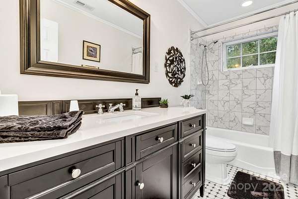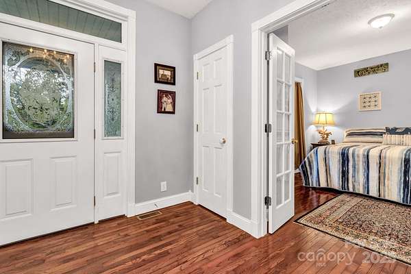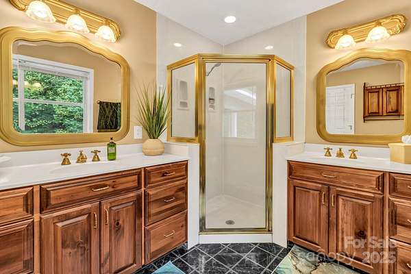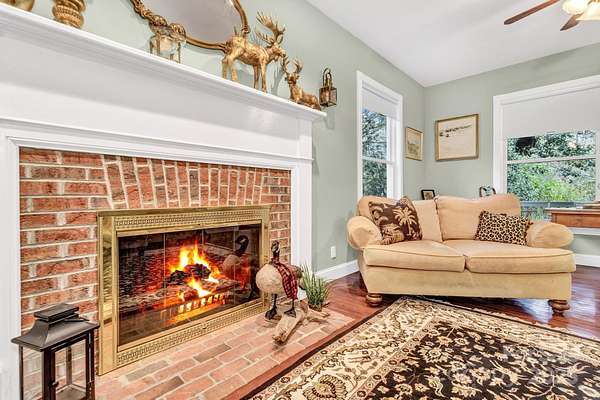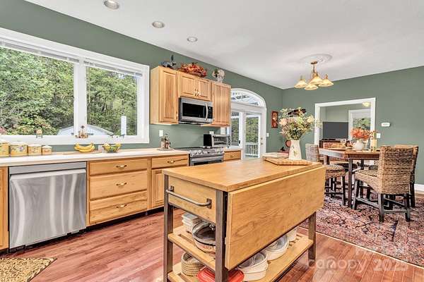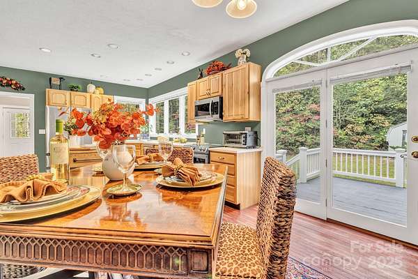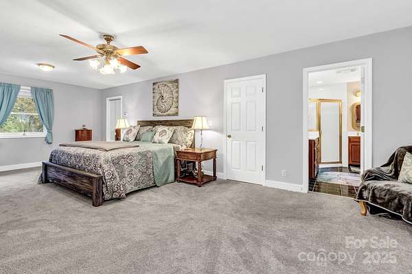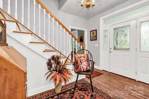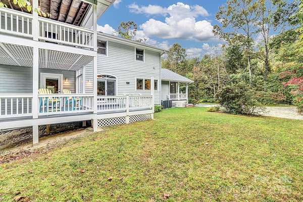 Discover this beautiful, site-built private estate nestled on nearly 5 acres featuring two peaceful streams and winter mountain views. Perfect for those seeking cooler temperatures and privacy just outside of town. Relax outdoors on one of five decks, including an upper deck off the primary suite, and enjoy the beautifully landscaped grounds with mature trees and vibrant seasonal blooms-azaleas, pink roses, rose of Sharon, hydrangeas, mountain laurel, and more. The fully paved driveway leads to an oversized two-car garage, additional parking spaces, and a lower cleared area ideal for RVs or trailers. Inside, you'll find newly carpeted bedrooms, a spacious primary suite on the second floor with walk-in closet, a cozy Vermont Castings gas log fireplace, and a outdoor balcony. Additional fireplaces include a gas log unit in the kitchen and a wood-burning fireplace in the living room, adding warmth and character throughout. Features include 9-foot ceilings, all bedroom closets have custom modular organizers, ceiling fans, and dual-zone heat pump systems for both floors. Recent updates include a new roof, well pump, 18KW Generac generator, radon mitigation system, new countertops, and stainless-steel appliances. The partially finished full basement offers abundant storage, expansion potential, and a separate outside entrance. Centrally located near the amenities and restaurants of Chimney Rock Village, Lake Lure, Black Mountain, Hendersonville, and Asheville-this home offers the perfect blend of seclusion and convenience.