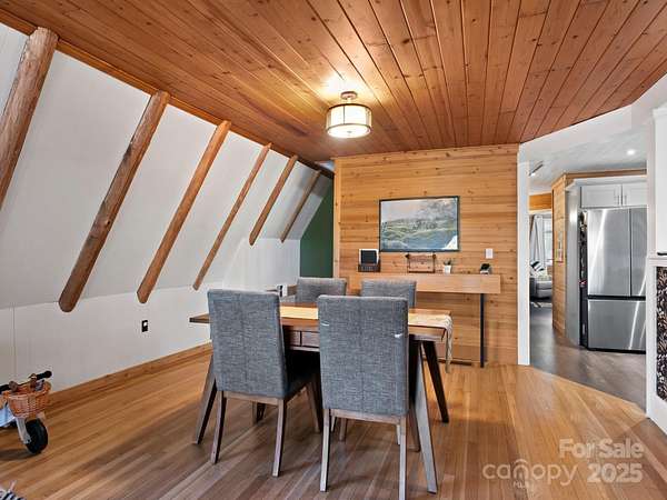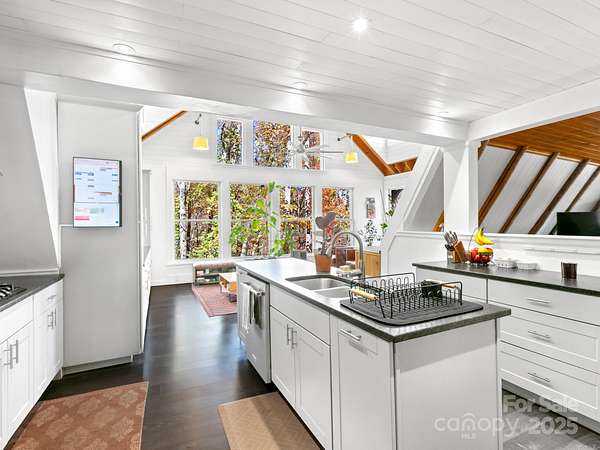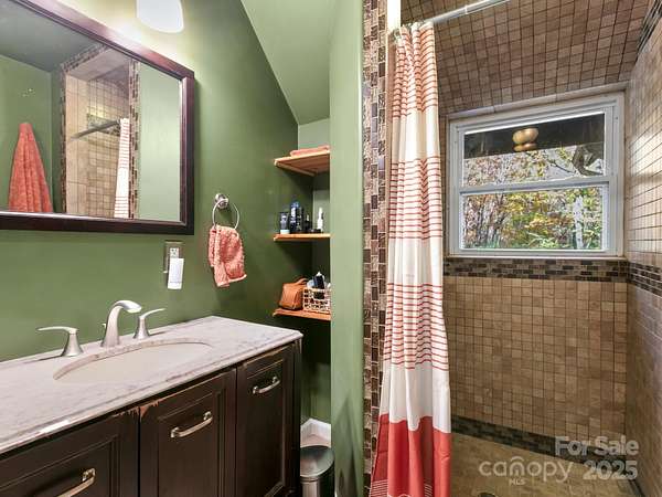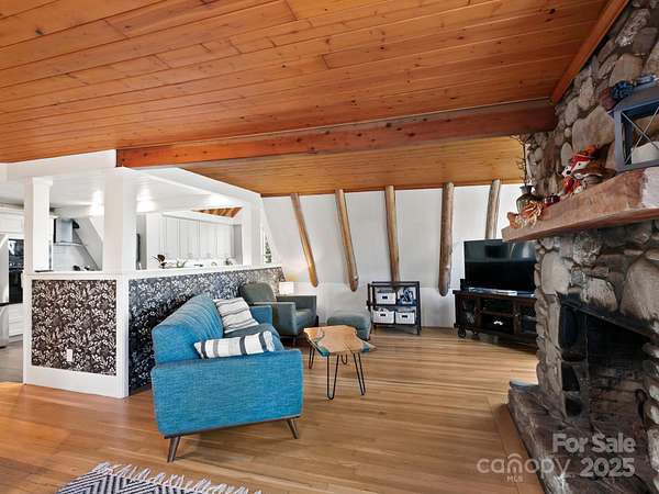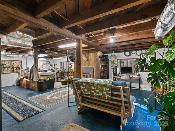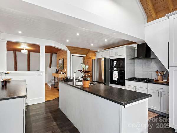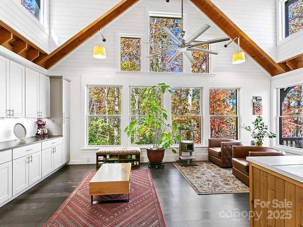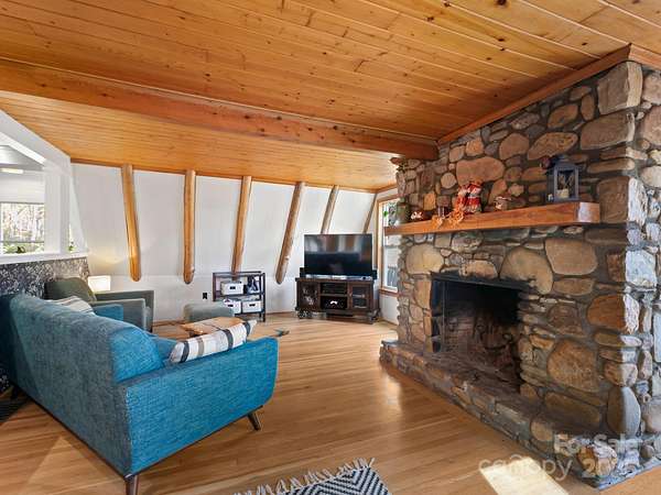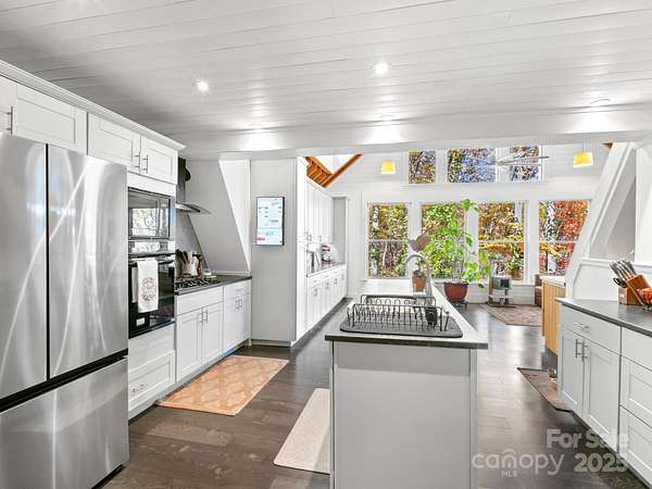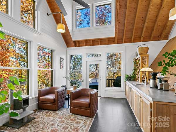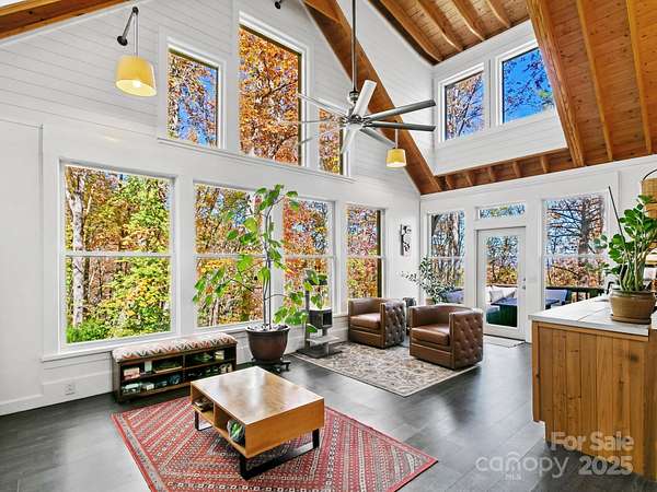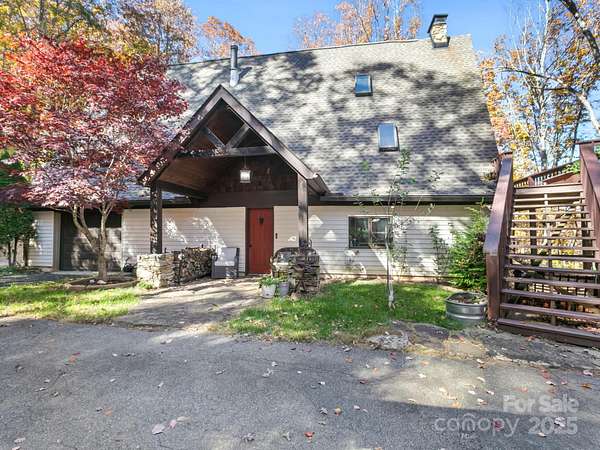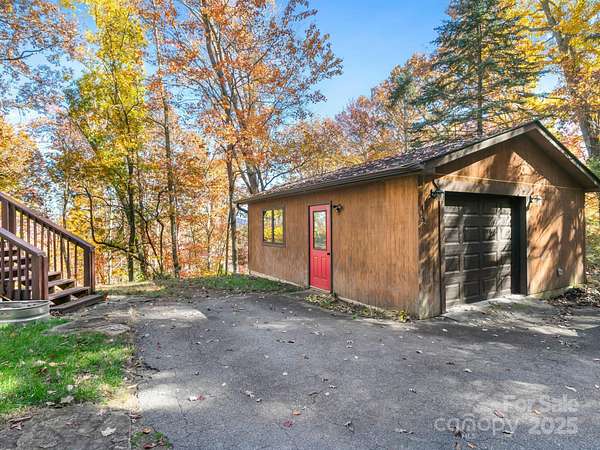 "Your Private Mountain Oasis on 2.4 Secluded Acres! Escape to this stunning, rustic-contemporary retreat in a desirable location. Nestled in a peaceful, wooded setting, this home offers the ultimate in privacy and modern living. Step inside to a sun-filled, open-concept layout featuring a chef's kitchen with upgraded stainless steel appliances, a gas range, and extensive cabinet space, perfect for entertaining. Enjoy seamless indoor-outdoor living with a massive deck overlooking the tranquil, private acreage - your ideal spot for morning coffee or evening unwinding, complete with winter views. Move-in with peace of mind: a new roof (2021) and updated whole-house electric panel (2020), AC replaced (2019), new retaining wall (2025). Discover a home that has been lovingly maintained and ready for you to move in. Enjoy updated, tiled bathrooms, high beamed ceilings w/skylights & oversized windows to maximize natural light and views. This property offers exceptional versatility, featuring a partially finished basement with a designated workspace/1car garage. In addition, another detached oversized one car- garage with a separate 100-amp service-perfect for a workshop, artist studio, or home gym. It is conveniently located just minutes from Asheville dining, shopping and access to Blue Ridge Parkway outdoor activities! 1 year 2-10 warranty to buyers.