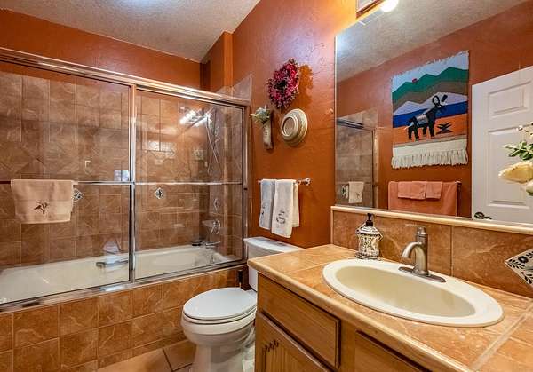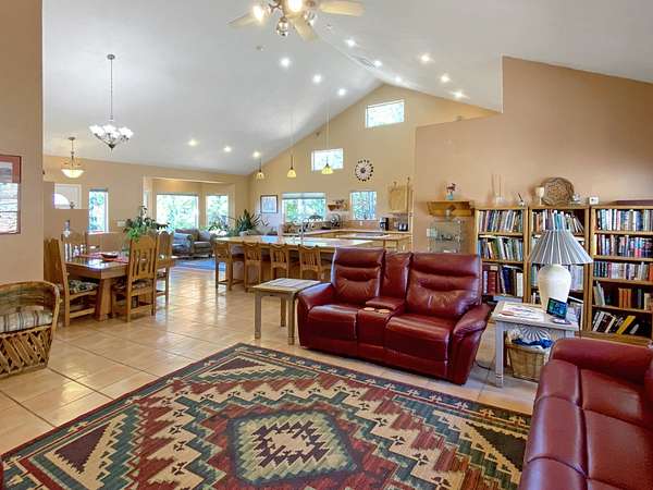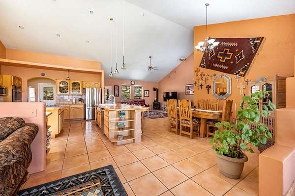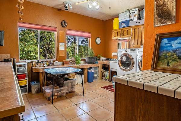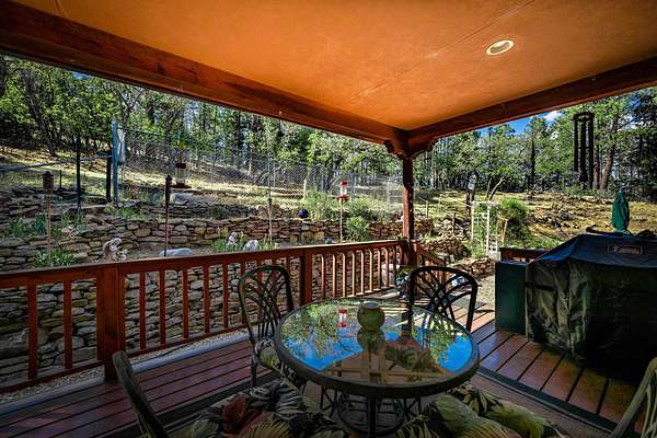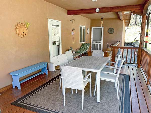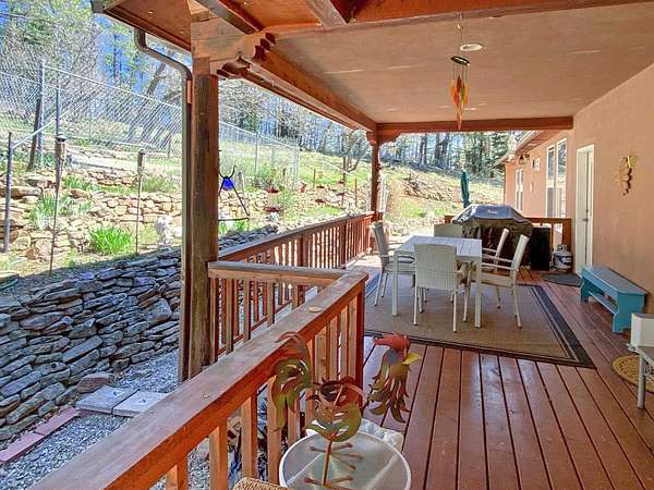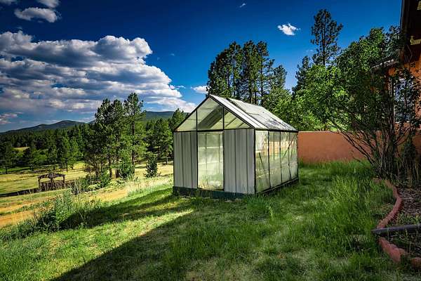 Nestled among the tree line, at the base of Osha mountain peak, sits a stunning and custom built 3,251 square foot ranch style home. On 18.87 acres, enjoy expansive mountain and valley views to your front and useable mountainside to your back. Jump on your four-wheeler, ride your horse or hike up the cut in trails to your own private entrance to Carson National Forest. This one story, 3 bed 3 1/2 bath home offers an attached, over sized two car garage that enters into the hobby/utility room of your dreams. With an open floor plan, soaring ceilings and a covered front and back deck, this property has it all. Even a whole house vacuum system! There is also a 20 panel solar setup to keep your electric bill WAY down low! Drive in for the summer and hook up your RV to the 30 amp outlet and sewer hookup, next to the garage. The Angel Fire Resort ski mountain, nationally renowned mountain bike terrain park, PGA-rated golf course and many more valuable amenities are just 10 miles down the road. Don't miss this opportunity to own a private, yet convenient slice of mountain paradise. The house comes fully furnished and ready for move in!