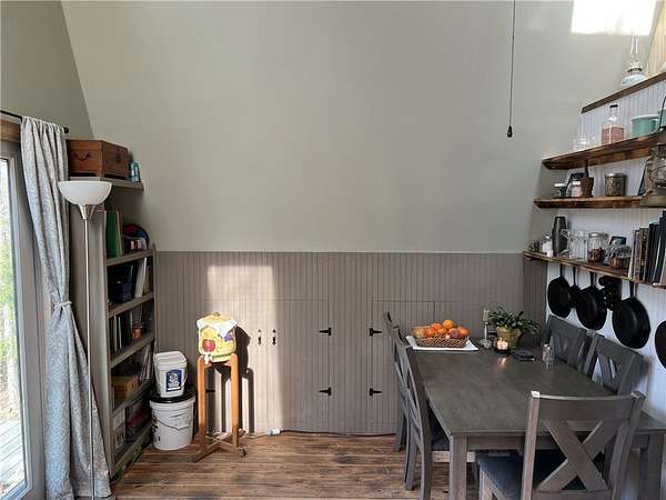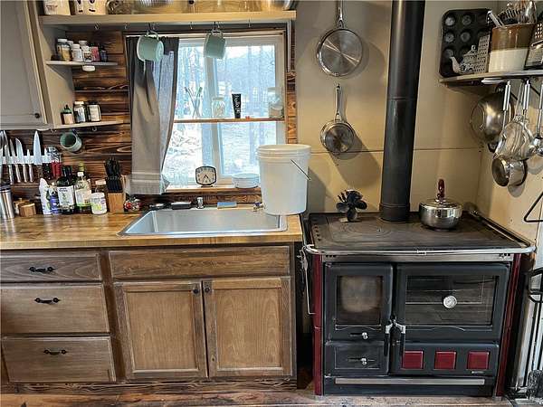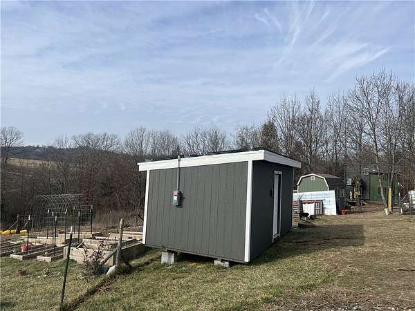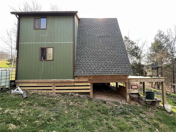 Est $620/mo"Off Grid Living" in this 576 SQFT home with 2 BR-1 BA (composting toilet and graywater shower) on 3.43 acres m/l. Electric is provided by the whole-house solar system. Home features a wood cookstove with oven and cooktop, root cellar, electric oven, wood floors, and deck. The fenced property features a storage building (8 x 12), solar building (10 x 20), chicken coop, shed, raised garden beds, several fruit trees, and 5 water catchment holding tanks with one on a trailer.