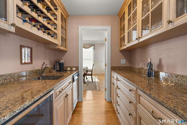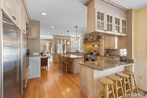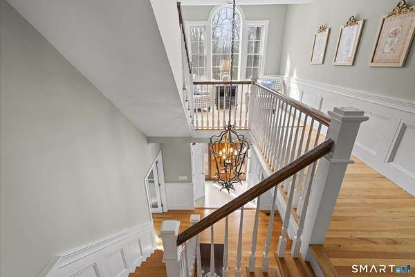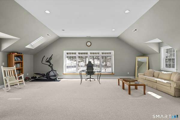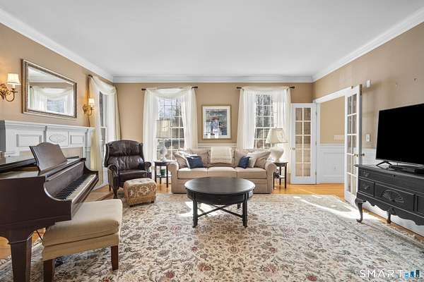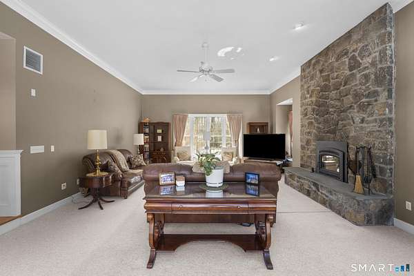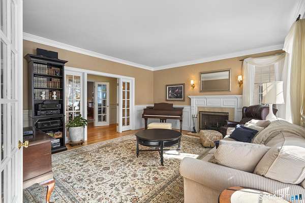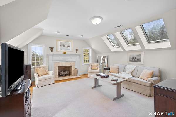 Stunning custom-built Colonial set on 2.54 private acres in the highly sought-after Amity School District. This impressive home offers 6,531 sq ft of living space with 5 bedrooms, 4 full baths, 1 half bath, and 4 fireplaces, blending classic elegance with spacious modern living. Designed with generous proportions, every room feels open and bright with high ceilings and abundant natural light. The expansive kitchen flows into a large family room featuring a beautiful stone fireplace with wood-burning insert, perfect for gatherings and entertaining. The home features a private primary bedroom wing with sitting area and large windows, creating a peaceful retreat. Outdoors, enjoy a wraparound deck off the family room that connects to a stone patio off the kitchen, overlooking the large backyard with a custom stone firepit seating area. The property backs up to protected water company land, offering exceptional privacy and scenic surroundings. Additional potential exists in the third floor and walk-out basement with high ceilings and patio access, ideal for future finished space. Accessed by a shared driveway from Peck Hill Rd, this original owner/builder home sits on land once purchased from the Queen of England, adding a unique historical touch. A rare opportunity to own a remarkable estate property just minutes from Yale, downtown New Haven, and major commuting routes.