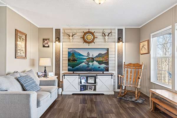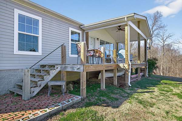 Dale Hollow Lake LOVERS! This immaculate, like new Clayton manufactured home (on 12.39 unrestricted acres w/LAKE VIEW) is a private oasis w/an abundance of FAV features inside and out. Acreage is flat to rolling with garden spot, grape vines, wild berries & apple trees. (also joins US corp of Eng. DHL land). Plenty of room for chickens (small coop) or a critter or two. 2 barns- 1 is 25x30 (home to a car & boat!) other is 21x23 (side bay & porch), both w/water & electric. Home is latest decor-3br 2ba, open concept, kitchen island, white shaker cabinets, LPV flooring and is pristine with an insulation energy package & sheet rock. Covered front & back porches, permanent block foundation, 2X6 walls, smoke and pet free. Wake up to watch the sunrise from the back deck & sunset from the front porch. Just 5-10 minutes to Dale Hollow Lake and 3 marinas. Perfect for vacation or full-time living. Even room for the RV! Clean neighborhood & great neighbors! Seller discloses 2 bdrm. septic permit.