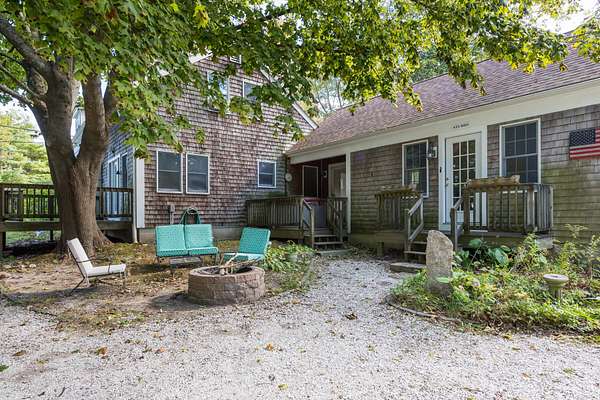 Fall for this historic, rambling Greek Revival that is just a short walk to nearby Snake Pond beach. Built in 1845, the classic home offers the best of the past with the best for today. It boasts almost a 2- acre corner location & park-like grounds with stately, mature trees. The pretty home has a front parlor; large dining/family room; modern, country eat-in kitchen with fireplace/gas stove insert; three second floor bedrooms; large 1999 built addition with own entries, spacious bonus room, sitting room. Features: 3 fireplaces; oak & wide plank pine flooring; 2 staircases; 2 basements (Cape Cod & full poured concrete); outdoor shower, detached 3-car garage with windowed second floor space. Insights: 2025 interior and exterior painting; 1st floor bathroom remodeled 2025; upstairs bathroom remodeled 2024; roof 2021; washer and dryer 2022; dishwasher 2023; easy sidewalk access. Opportunity Awaits! Explore the possible multiple uses of this special property.