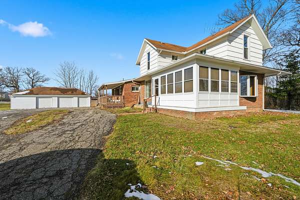 BACK ON MARKET! To NO FAULT of the sellers. Welcome to 39 S Bird Rd, a charming farmhouse built in 1931 and thoughtfully updated for modern living. This 3-bedroom, 2-bath home sits on 2.33 acres across two parcels in Clark Shawnee Schools. The main floor features a spacious primary suite, updated kitchen with new cabinets, counters, backsplash (2024), and appliances (2025). Not included in the square footage are two spaces... an inviting enclosed porch at the front of the home to sip coffee and watch the sunrise, and an enclosed rear patio where your hot tub is located to unwind at the end of a long day. Upstairs you'll find two additional bedrooms and a second full bath. Both bathrooms were remodeled in 2024. Additional improvements include new furnace (2019), new AC and ductwork (2020), updated plumbing, and new carpet (2025). Outside, enjoy the oversized 3+ car detached garage, fenced yard off the back patio, chicken coop, and small pond at the rear of the property. This property offers a wonderful blend of character, space, and updates all here in Springfield Township.