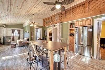 - Ceiling Fan(s), Laundry On Main, Primary On Main, Tile Shower/Tub, Vaulted Ceiling(s), Washer/Dryer Connection, Wood Ceiling(s)