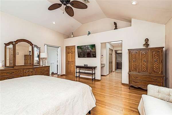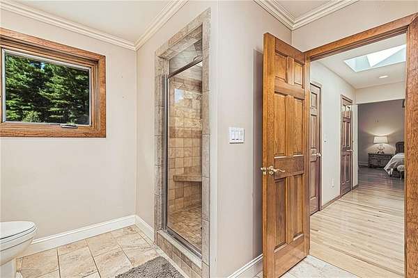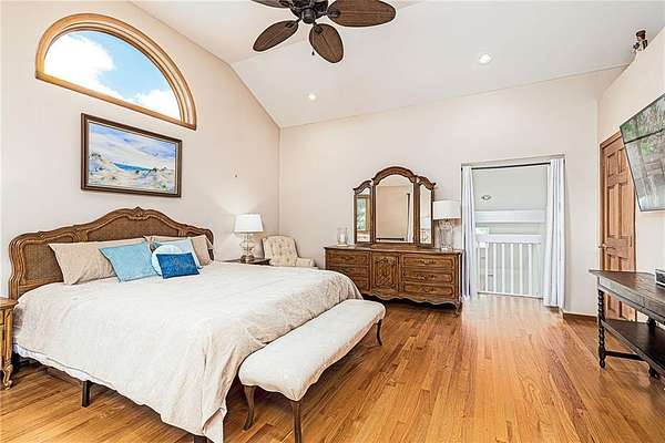 Upper Level: Upstairs you will find a large primary bedroom boasting cathedral ceilings, gleaming hardwood floors, & an abundance of natural light. It offers direct access to a full bathroom equipped with a luxurious, fully jetted shower. Two additional spacious bedrooms & another full bath complete the upper level.