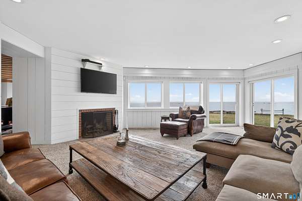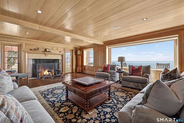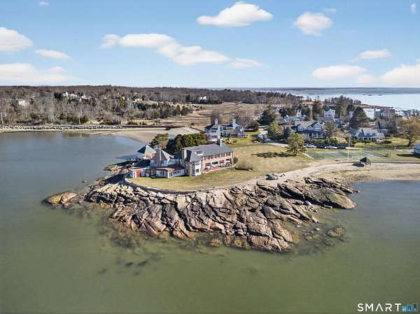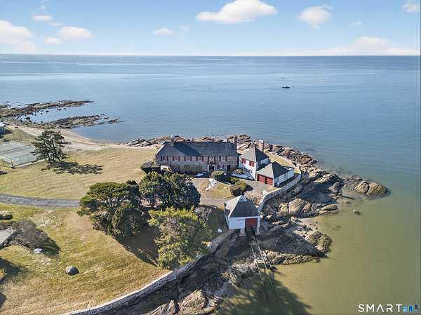 Where New England architecture meets timeless elegance! Experience the pinnacle of shoreline living in this spectacular waterfront estate, perfectly positioned on a private, peninsula-like setting in Sachem's Head community. Boasting breathtaking, panoramic views of Long Island Sound, this 1930s residence is a masterwork of historic character and unique architectural artistry. The home's rich heritage is reflected in its exquisite details, from the enduring beauty of Stony Creek Granite and warm Pecky Cypress woodwork, to the original "porthole" windows in the grand family room. In the formal dining room, a distinctive ribbed ceiling, designed to evoke the overhead of a classic ship's cabin, creates an unforgettable atmosphere for entertaining. The heart of the home features a generous galley kitchen that balances functionality with style, offering abundant cabinetry, expansive counter space, and dining area with plenty of windows making sure no view is missed. Retreat to the second floor to find six spacious bedrooms, each offering its own unique perspective of the water, while the finished third-floor "flex" space serves as an ideal game room or private sanctuary. Spread across two manicured acres, enjoy relaxed seaside living with multiple sun porches and expansive patio for gatherings. Take advantage of the Vineyard Place Association amenities, all while being just a short drive from charming downtown Guilford!