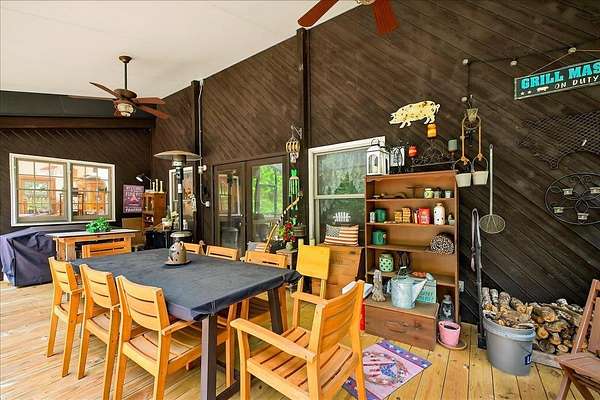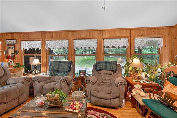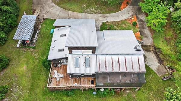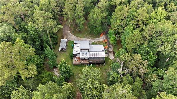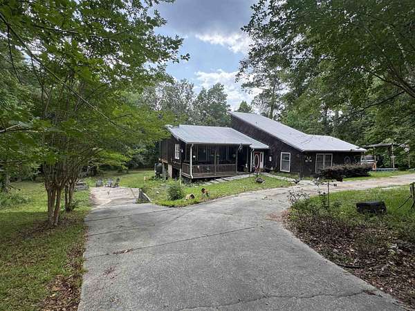 You'll love the long, winding road that leads you to this quiet and peaceful home set on 14 acres and adjoins a state park. This home features hardwood flooring and ceramic tile, a large screened porch and deck offers additional living/entertaining space. Spacious living room with a beautiful stone fireplace that sets off the rustic feel of this lodge style home. 2 bedroom/plus a loft (3rd bedroom), 3 bathroom home. The spacious primary bedroom is on main floor, with a large bathroom with a walk-in shower. The third room/loft on top floor can be utilized as 3rd bedroom, playroom, study and is accessed by a spiral staircase and offers amazing views of the backyard and forest. Lower level/walkout basement with 424 SqFt of finished living space, not included in SqFt. The home has a 1.5 car garage and carport, great for storing a boat. Whole house Generac generator. Embrace laid back country living with 2 chicken coops, smoke house, garden, and a shed/storage building. For nature lovers this ia an opportunity to create amazing walking paths, gardens... to add to the outdoor living experience you'll enjoy just a short drive to Lake Talquin and the National Forest.