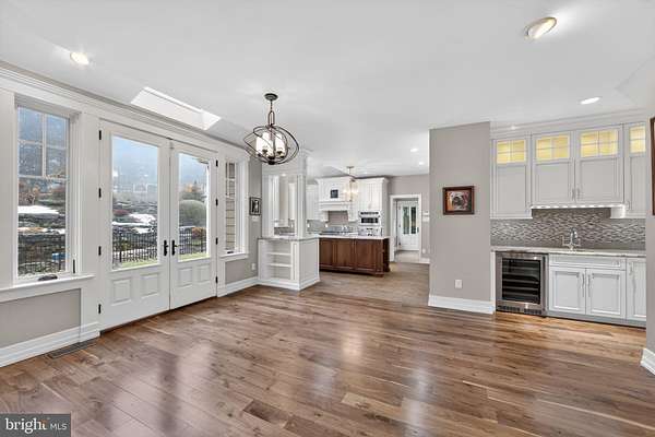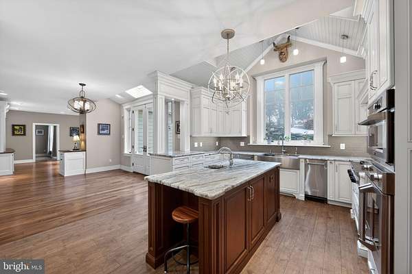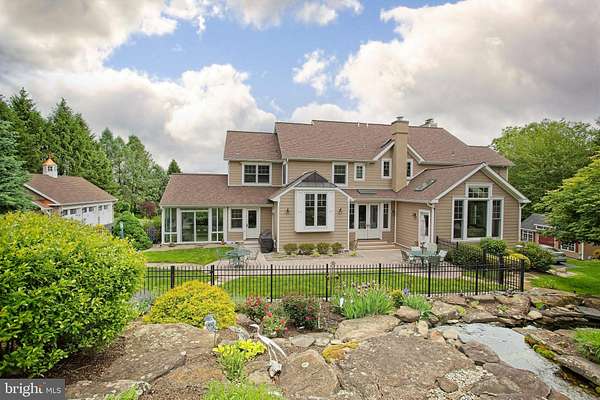 Welcome Home! This exceptional Chester Springs estate is ideally situated on a serene cul-de-sac within the highly sought after community of Cotswold Estates. Set on over three meticulously landscaped acres, an illuminated, tree-lined driveway leads to an elegant circular court, that creates a memorable arrival to this exquisite home. This fully renovated residence offers more than 5,700 square feet of thoughtfully designed living space, featuring six bedrooms, four full baths, and two powder rooms. A flagstone walkway ushers you into the dramatic two-story foyer, where rich solid walnut hardwood floors extend throughout the main level, creating warmth and continuity from one space to the next. The formal living room is anchored by an elegant fireplace and features a wall of windows, showcasing expansive views of Chester County. The formal dining room boasts a bow window, a stunning custom mural and connects seamlessly to the butler's pantry with easy access to wine storage and beverage refrigerator. The vaulted family room, complete with gas fireplace, custom built-in cabinetry, and automated shades, flows effortlessly into the breakfast area and kitchen, ideal for both everyday living and entertaining. The kitchen is appointed with a sizable island, glass backlit cabinetry, custom range hood, gourmet stainless steel appliances, remote-controlled skylights, and heated flooring. Just beyond, the outdoor brick patio overlooks a breathtaking multi-level waterfall and koi pond, the ideal location to relax and unwind. Completing the main level is a spacious home office, a cheerful three season room, two powder rooms, a laundry area with exterior access and a dog shower! The attached oversized three-car garage features built-in storage and EV charging outlet. A newly constructed detached three-car garage with another EV outlet and built-in manual lift provides a total six-car garage capacity. The upper level is accessible via the main staircase or a discreet rear stairway. The primary suite features a tray ceiling, gas fireplace, a cozy window seat and window with automated blackout shade, a sitting room, and generous closet space. The ensuite bath with heated flooring includes dual vanities, soaking tub, glass-enclosed shower with body sprays, and remote-controlled skylights. Four additional spacious bedrooms, one with an ensuite bath, plus a hall bath complete the upper level. The finished lower level, with its own driveway and exterior entrance, serves as a true in-law suite and features living and dining areas, a charming kitchenette, a spacious bedroom, full bath, laundry area, and more. The space is ideal for extended stays, an au pair suite, or additional private living space. Additional features include a whole-house propane generator, four HVAC units, water treatment system, fenced yard with irrigation, HardiePlank siding, newer Kolbe windows and doors, CertainTeed roof, storage shed, a three-tier waterfall cascading into a koi pond, gazebo, and illuminated pathways winding through landscaped gardens with specimen trees. Conveniently located near Routes 100, 401, and the PA Turnpike, this is a rare opportunity to experience the pinnacle of Chester Springs living-where timeless elegance and scenic serenity meet seamless access to Chester County's finest dining, boutique shopping, parks, and recreation. Interior photos to be added after 3/6. Schedule your private tour today.