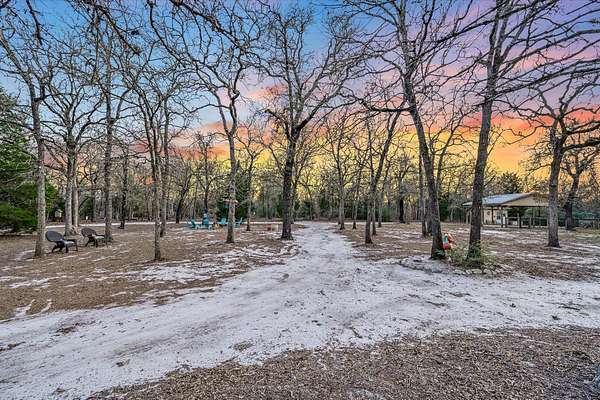 Experience the perfect balance of privacy and convenience with this beautifully wooded 5.426-acre lot, ideal for building your custom home or creating a peaceful weekend retreat. The flag-shaped lot features a long, tree-lined driveway leading to a cleared homesite nestled at the center of the property. Existing improvements include a well, septic system, carport, two storage sheds, and an outbuilding equipped with electricity and a mini-split AC-perfect for a home office or studio. City water and sewer also available at the street. Horses, chickens, cows, goats allowed. Located just 1.5 miles from Highway 290, this serene country setting offers easy access to modern conveniences-only 45 minutes from downtown Austin. Local favorites such as H-E-B, Meyers Smokehouse, and Southside BBQ are just 5 miles away. If you're seeking additional space, the adjacent 5-acre parcel is also available (MLS#7070203). Build the lifestyle you've imagined in the heart of tranquil Central Texas.