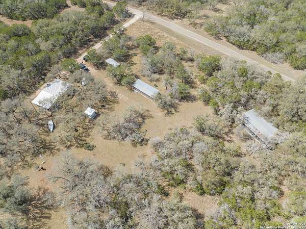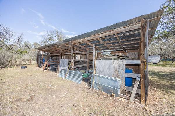 Charming 1-Bedroom Retreat on 10 Acres at the Gateway to the Texas Hill Country. Discover peace, privacy, and potential on this scenic 10-acre property, perfect for a quiet escape, hobby farm, or animal care. The light-filled 1-bedroom, 1-bath home features 11 large windows, a wraparound patio with outdoor kitchen setup, and serene views in every direction. Outdoors, enjoy a 402-ft well tapped into the Edwards Aquifer, a shed row barn with 3 horse stalls, and a dog kennel with 21 covered dog runs on concrete with water and electric access. Recent upgrades include a new HVAC (2019), roof (2021), and water filtration system (2022). A second septic system and electric meter offer room to grow, plus an ag exemption keeps taxes low. Your Hill Country haven awaits-secluded, sustainable, and ready for whatever comes next.