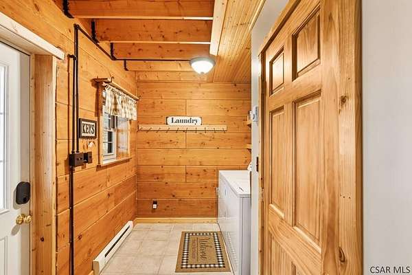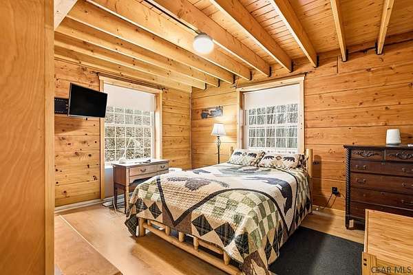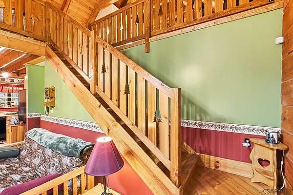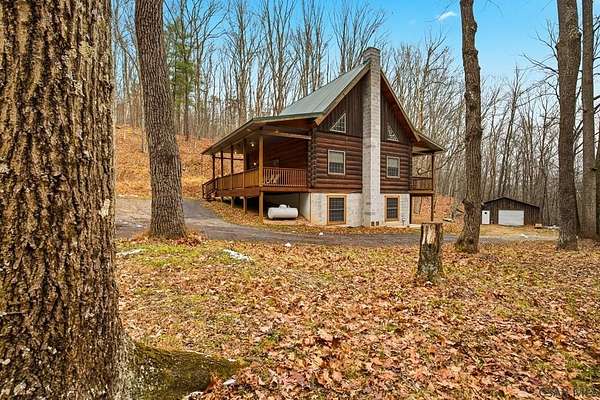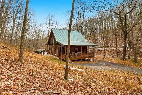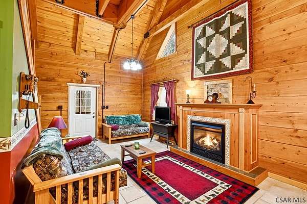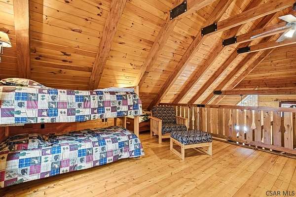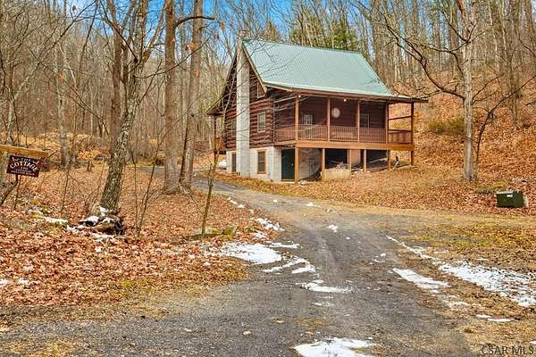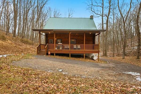 OPEN HOUSE 12/14/25 FROM 2-3:30 PM. Nestled in the trees along a private road, this log cabin is the perfect rustic retreat. Built in 2009, this log home sits on 4.3 acres and is being sold fully furnished for the new owners to enjoy right away! Currently used as a part-time residence and Airbnb rental. Features on the main floor include a laundry area, galley style kitchen, dining area, living area with cozy fireplace, bedroom, and full a bathroom. Upstairs to the open loft, you will find 2 sleeping areas (currently sleeping 4 people) and a full bathroom. The full basement (which already has a bathroom) could easily be finished to create even more living space! Watch for wildlife on either of the covered porches. 30 minutes from Bedford and 20 minutes from Cumberland, MD. Make this your full-time residence, your home-away-from-home, or start your own investment portfolio!