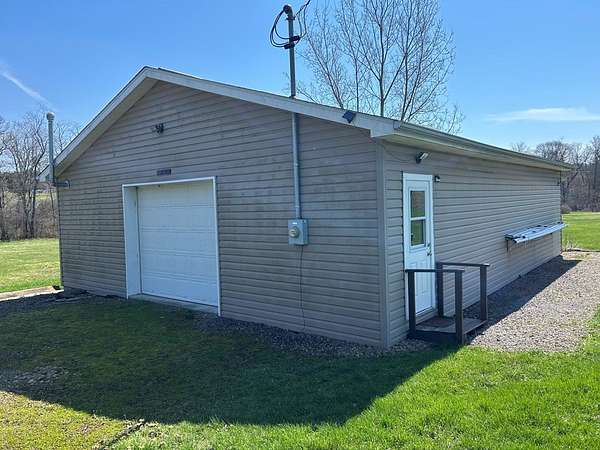 Very unique property to have a cottage/camp get away with a 32' x 40' garage area to tinker or entertain. Buildings included are a 12' x 20' wood frame building with interior finished area including heat, living area, public water, public sewage and a 1/2 bath. Adjacent property is a 32' x 40' heated garage with concrete floor and a massive 12' x 26' covered rear porch. Buildings are situated on a 7.1 acre site that borders Canoe Creek with very picturesque setting and a tranquil rear property area that has a swimming hole and frontage along the quiet creek. Garage has 200 amp electric service and an overhead heating system. The garage could be converted to living area for the popular Barndominium concept. Close to Knox, but rural private setting. Close to I-80, Route 208 and Route 338.