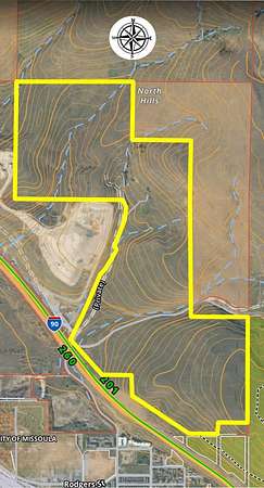 This extraordinary 494-acre property offers a unique opportunity to own land with breathtaking views overlooking Missoula and the surrounding mountains. Situated north of Interstate 94, between Orange Street and Reserve Street exits, the property features sloping hillsides, valleys, and access via two county roads. Electricity, natural gas and internet are readily available. Zoned as Agricultural Working 40 (AGW-40), the land offers various possibilities, from agricultural use to development opportunities. The eastern border adjoins city-owned land, while private lands border the north and west, ensuring seclusion and privacy. The property's natural beauty and varied terrain make it ideal for outdoor activities. With proximity to Missoula and essential infrastructure in place, this land is perfect for investment, development, or a private estate. This is a rare chance to own a remarkable piece of land in a prime location.
