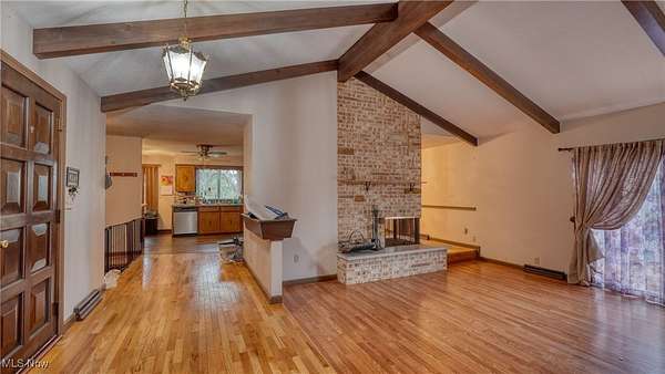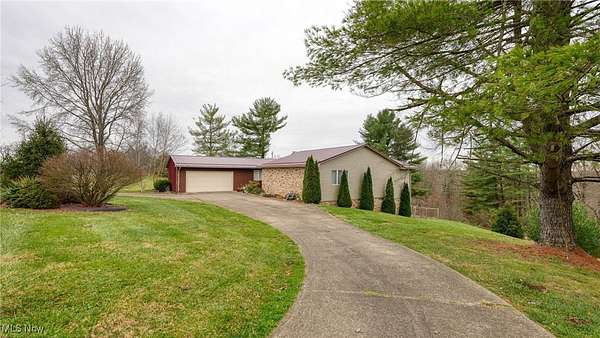 Est $1,941/moDiscover this modern ranch set on 2 serene acres, offering a blend of elegance and functionality. The sunken living room boasts dramatic cathedral ceilings and two cozy gas fireplaces, creating the perfect space for relaxation. A formal dining room and a convenient first-floor laundry enhance everyday living. The walkout basement provides versatility with additional rooms for storage or the option of an extra bedroom. Recent updates include a newer roof and heating system for peace of mind, plus a newly poured concrete floor in the garage and a new water heater.