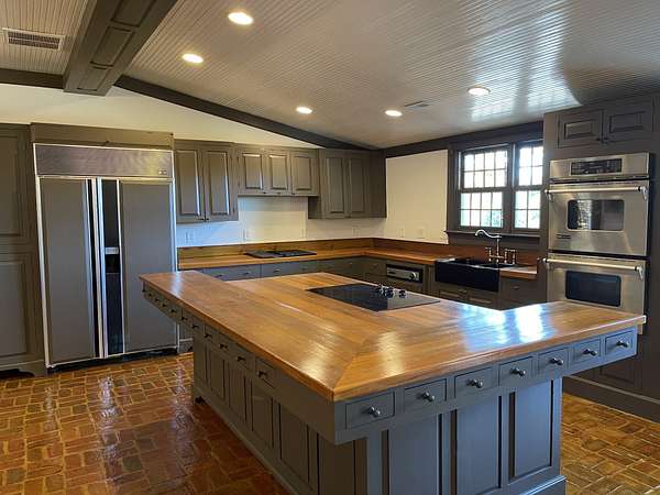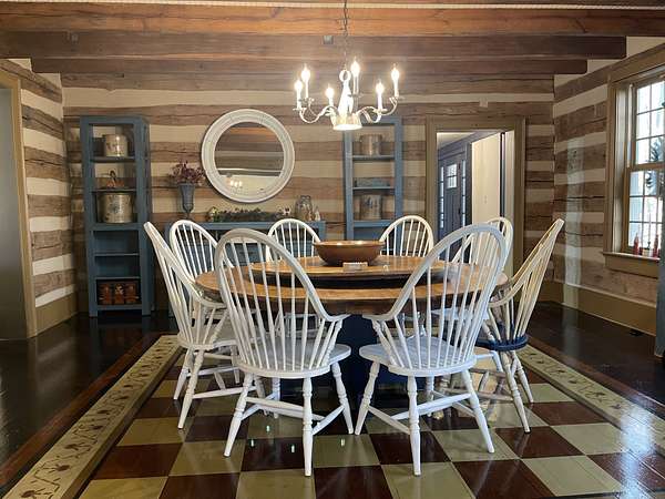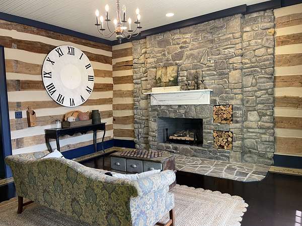 The soul of this place is in the logs, built from cabins crafted in the 1800s. Iron I-beams hold it all together, like the backbone of a timeless tune. Inside, the kitchen soars with light, and the stone fireplaces tell stories of warmth. It took over a year to place each stone, like verses in a perfect song.
