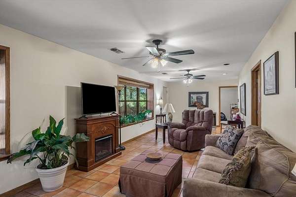 Imagine yourself waking up each morning surrounded by the peaceful serenity of your own horse property. From a rocking chair on the front porch, you can soak in the calm of the countryside. Step inside, and the view from your living room windows becomes a natural work of art, showcasing rolling pastures, mature trees, and a pond stocked with bass and white belly catfish. This 18.75-acre property offers roughly 844 linear feet of Loop 7 frontage, making it highly accessible and versatile. The improvements include a 3536 square foot barndominium with 1456 square feet of finished living space and 2080 square feet of garage space complete with two roll up doors, ideal for ample storage or easily finished out for additional living quarters. For equestrian needs, a 4000 square foot horse barn is designed with five 20x20 birthing stalls, a tack room, and an office with dog kennels, providing space for horses, dogs, and other animals. The land is fenced and cross fenced, offering flexibility for livestock, chickens, and gardens. The property also boasts a flourishing orchard with pear, peach, plum, nectarines, Chinese chestnut, pecan, blackberry, elderberry, beauty berry, and both domestic and wild grape vines, along with wild sumac berries -- ideal for fresh fruit or canning. Adding to the beauty of the landscape are black walnut trees and a pair of live oaks, while an abundance of hickory trees provide shade and character throughout the property.