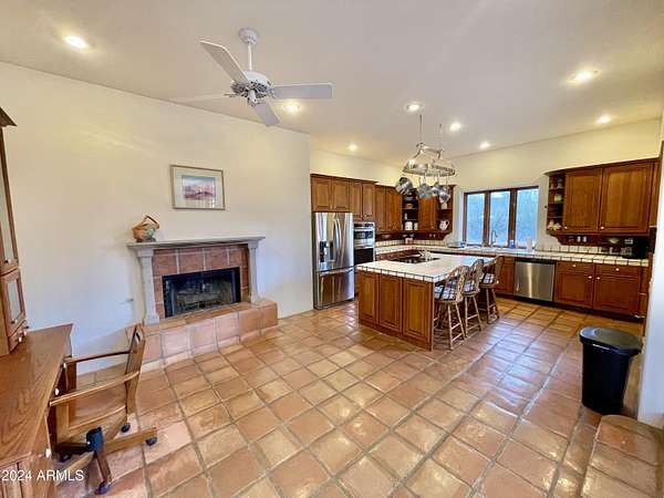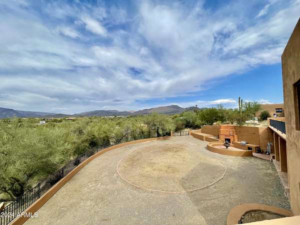 Stunning Custom Built Home with Panoramic Views, within a few miles from the town of Cave Creek. Gourmet Kitchen with a Fireplace that opens up to Dining room and sunken Family room with a custom fireplace. This home was built with views in mind, each area of the house you will see amazing mountain views, enjoy your evenings sitting on the balcony with endless mountain views. 3 Bedrooms with a jack and Jill bathroom. Home sits on over 2 Acres and is in a very private area. Outdoor space has a huge patio with a custom sitting area around the fireplace. You will love everything this home has to offer, one of kind custom home with Panoramic views. Arizona sunsets at its finest.