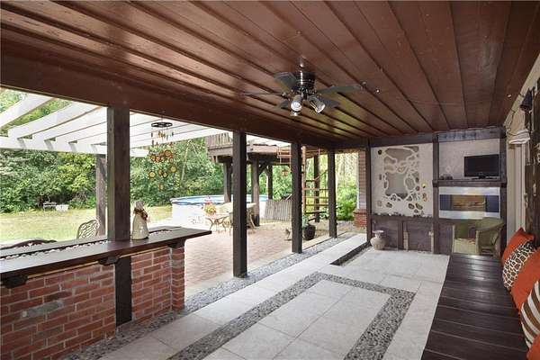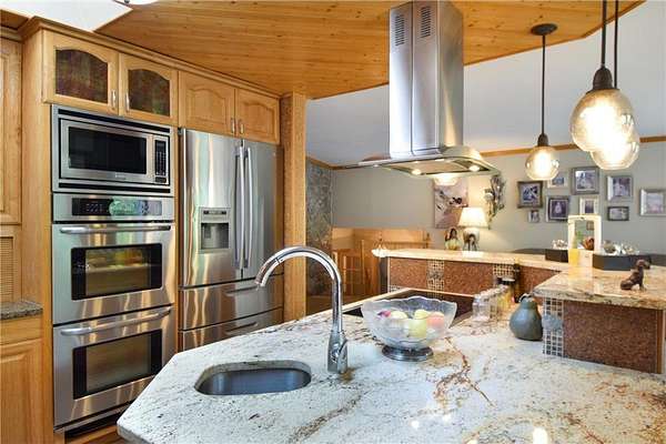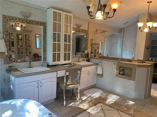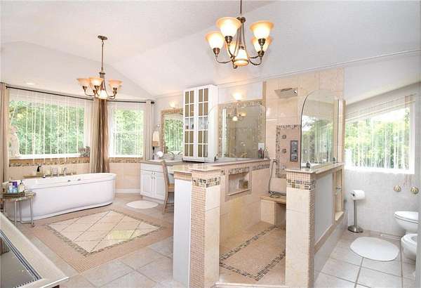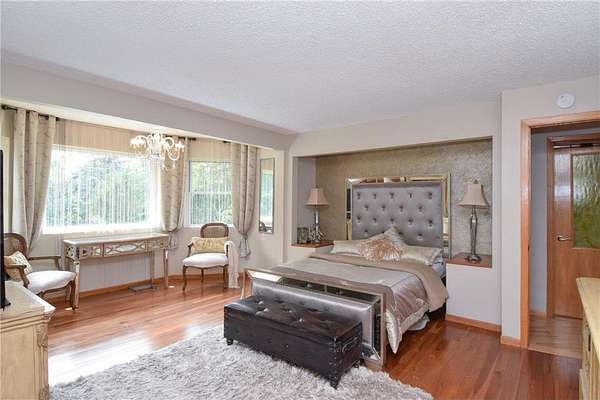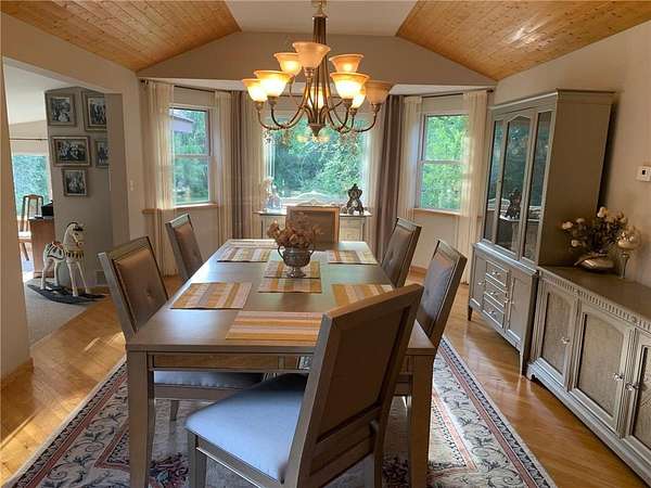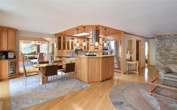 Unique and astonishing home set on a private 4.25-acre lot surrounded by wildlife. This property features large bay windows, ceramic tile, magnificent lighting, granite countertops, and an outstanding layout.The master suite boasts a spacious bedroom area with a bay window and fireplace. The elegant formal dining room includes a chandelier and a vaulted three-section recessed ceiling made of natural wood. Adjoining the dining room is a library room and a butler's pantry, which is equipped with a refrigerator, shelves, and a sink. This home offers multiple entertainment rooms, including a wet bar and an exceptional outdoor setting perfect for family and friends. The Mother-in-Law suite, with a separate outside entry, features a huge kitchen with a center island, stainless steel appliances, a full bath, and a living room. Additional amenities, exercise room and a sauna for your convenience. With new appliances and heating system this home provides ease and enjoyment!