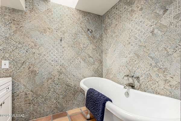 This stunning home is situated on a quiet 3.94 acre lot with panoramic mountain views and your very own private desert oasis. This meticulously maintained and updated 5 total bedrooms (two primary suites) and 3 bathroom space has room for all. The rustic charm of the Saltillo tile throughout and the custom high end modern updates make this home unique and cozy. The kitchen has a large butcher block island, newer quiet close cabinets, high end stainless steel viking appliances, full tiled backsplash wall and tasteful copper accents making this kitchen a dream to cook in. This home features newer wood clad windows, walk-in closets, custom tile surround walk-in showers (primary baths), a gorgeous claw foot tub (guest bath), and a tasteful paint pallet throughout. Outside you sill find a sparkling pool with slide for the hot summer days and ample usable space for future horse facilities, gardening, or an additional garage/shop/guest house, the possibilities are endless. Minutes from Agua Caliente park, horse back riding trails, hiking and bird watching galore. Located within the "A" rated Tanque Verde School district, nearby golf courses, restaurants and shopping you don't want to miss this gem!