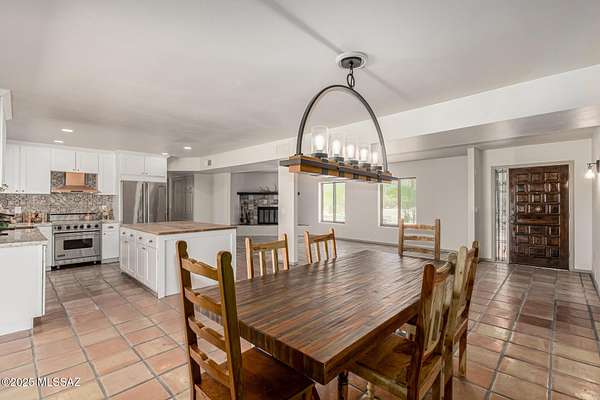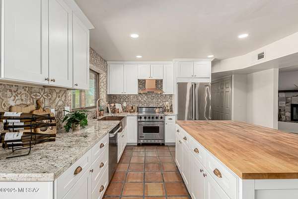 FOR RENT. This stunning home is situated on a quiet 3.94 acre lot with panoramic mountain views and your very own private desert oasis. This meticulously maintained and updated 5 total bedrooms (two primary suites) and 3 bathroom space has room for all. The rustic charm of the Saltillo tile throughout and the custom high end modern updates make this home unique and cozy. The kitchen has a large butcher block island, newer quiet close cabinets, high end stainless steel viking appliances, full tiled backsplash wall and tasteful copper accents making this kitchen a dream to cook in. THIS HOME IS ALSO LISTED FOR SALE UNDER MLS # 22521194