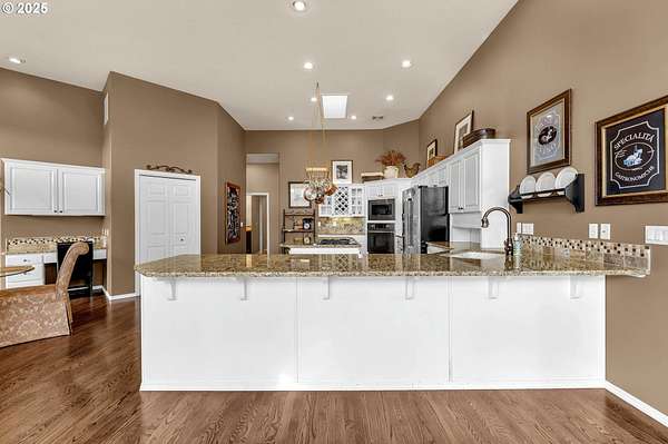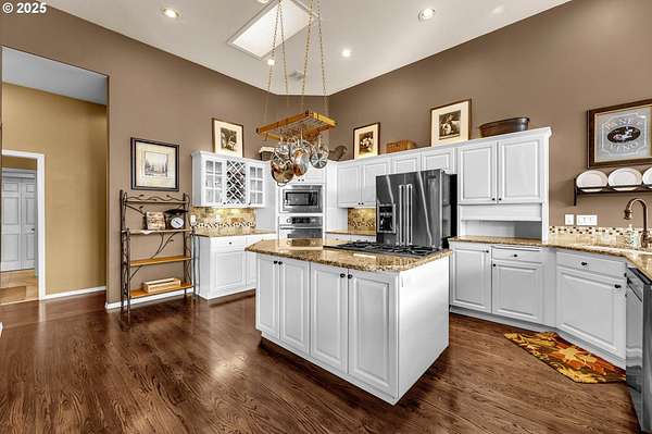 - Builtin Oven, Cooktop, Dishwasher, Disposal, Free Standing Refrigerator, Gas Appliances, Granite, Island, Microwave, Pantry, Plumbed For Ice Maker, Stainless Steel Appliance
