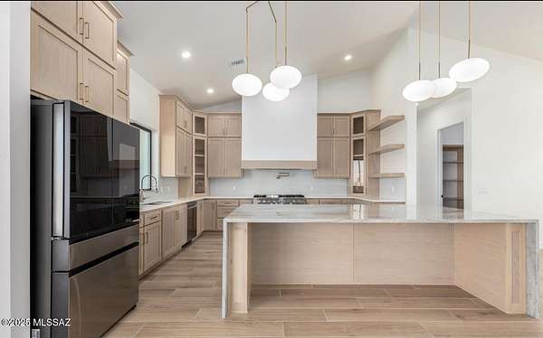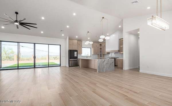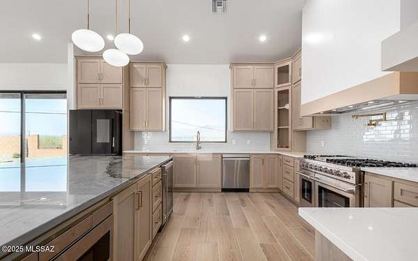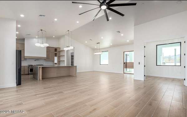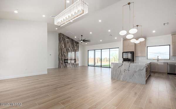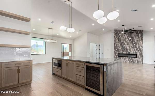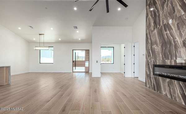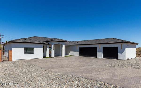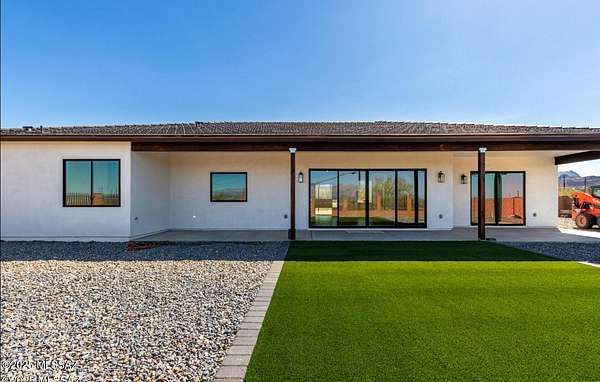 Est $4,738/moStunning new-build on 3+ acres with breathtaking mountain views! This 4 bed, 4 bath home features modern elegance with vaulted ceilings, designer lighting, wood-look tile, and an open-concept layout. Enjoy a wall-mounted fireplace and multi-slide doors that blend indoor-outdoor living. The gourmet kitchen boasts quartz counters, a waterfall island, gas range, wine cooler, and stacked shaker cabinets. Contemporary curb appeal, 3-car garage, extended driveway. Water well. A true desert gem!