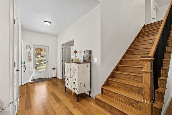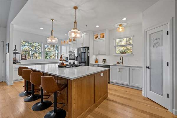 Beautiful country living in this renovated 3,500-square-foot estate, set on 3.5 acres with a short drive to Siloam Springs. Blending modern amenities with rural charm, this property offers spaciousness, privacy, and everyday convenience. Step inside to discover an open-concept living spaces, tall ceilings, and natural lighting. The updated kitchen is a chef's dream, showcasing custom cabinetry, solid-surface countertops, top-tier stainless steel appliances, and a generous island perfect for hosting family and friends. Step into the primary suite with access to large back deck, complete with a spa-inspired bathroom featuring dual vanities, a walk-in shower, and 2 oversized closets. With five bedrooms, four and a half bathrooms, and a finished basement equipped with its own kitchenette, this home offers exceptional flexibility for guests, multi-generational living, or entertaining guest. Outside the 3.5-acre lot invites gardening, recreation, or anything you can imagine.
