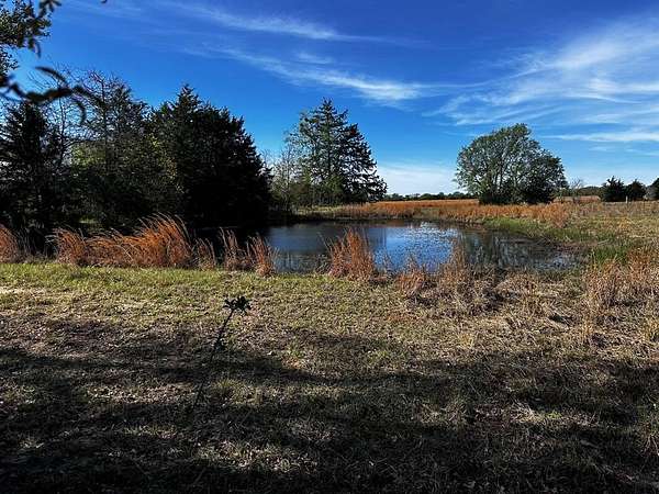 A small pond adds both charm and practicality providing a natural water source for animals and a peaceful focal point to enjoy the land is fenced on three sides with barbed wire helping define boundaries and reduce upfront cost for future improvements.