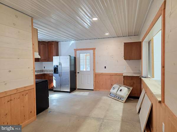 A huge new garage - yup. Water/Septic and Electric installed. Kitchen and full bathroom. Private setting. Give me a call, let's discuss details.