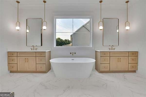 Take advantage of limited-time, end-of-year builder Discount on this exceptional new construction-designed for today's modern and multigenerational lifestyles. Featuring two primary suites, one on each level, this home offers unmatched flexibility, comfort, and long-term functionality. The main-level in-law suite provides ideal accessibility and privacy for extended family or guests. The open-concept design showcases generous ceiling heights and a living room open to the second floor, creating a bright, expansive atmosphere. At the center of the home is a chef-inspired kitchen with dual islands, premium finishes, and a hidden butler's pantry behind fold-in cabinetry, blending sleek design with everyday practicality. The kitchen flows seamlessly into the dining and living areas-perfect for entertaining or daily living. Each bedroom is a private ensuite, complete with its own full bathroom and oversized walk-in closet with custom built-ins. Convenience continues with laundry rooms featuring soaking sinks on both floors and powder rooms on each level for guests. A true standout is the oversized daylight basement with both interior and exterior access-offering endless possibilities for a home theater, gym, guest suite, or additional living space. Outdoors, enjoy a state-of-the-art deck and covered porch with a built-in grilling area and custom firepit, overlooking a partially wooded, partially cleared lot that provides both privacy and natural light. The expansive backyard also allows room for a future pool, giving you the freedom to create your ideal outdoor oasis. Modern comfort and efficiency features include: Dual HVAC system (electric with gas option) Tankless water heater/Built-in sprinkler system/220V EV charging outlet/Quiet garage door openers/Energy-efficient blown-in insulation Wrought iron entry gates for added privacy and security Upstairs, a spacious media room and a dedicated office make this home ideal for remote work, study, and entertainment. Conveniently located near major highways, shopping, and top-rated schools, this property blends luxury, functionality, and opportunity-enhanced by end-of-year builder discount available now.