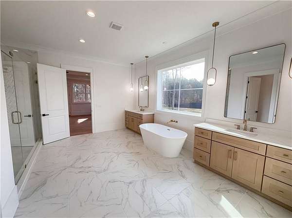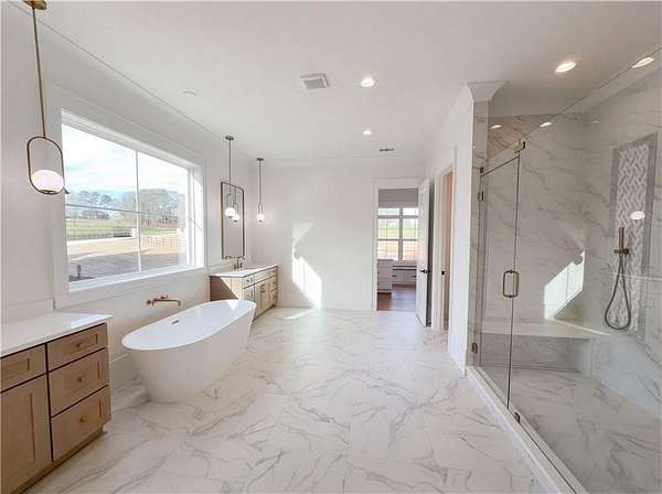 Welcome to 3903 Indian Shoals Rd SE, a home that boasts a kitchen island, accent backsplash, and all stainless steel appliances. The primary bedroom features a walk-in closet, while the primary bathroom is equipped with double sinks, a separate tub, and shower. The kitchen offers a walk-in pantry, ample counter space, and great cabinet storage. Enjoy cozy evenings by the fireplace or relax on the deck. The neutral color paint scheme is complemented by a covered patio. This home has a new HVAC, new roof, fresh interior and exterior paint, and new flooring throughout. Partial flooring replacement and new appliances add to the appeal. This home is ready for you to make it your own.. Included 100-Day Home Warranty with buyer activation